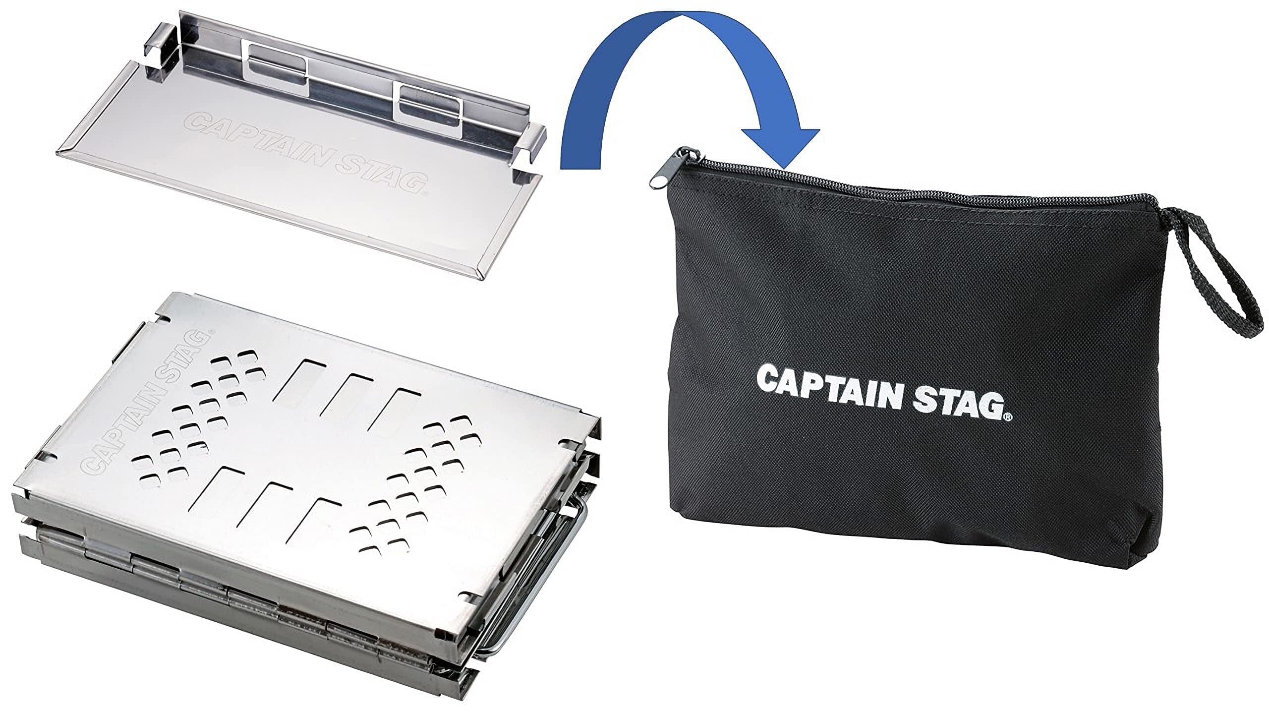 【 限定】 キャプテンスタッグ(CAPTAIN STAG) バーベキューコンロ 焚火台 1台3役 折りたたみ カマド スマートグリル 【B6型/B5型】 3段階調節可能 ステンレス製 バッグ付き UG-45/UY-7021