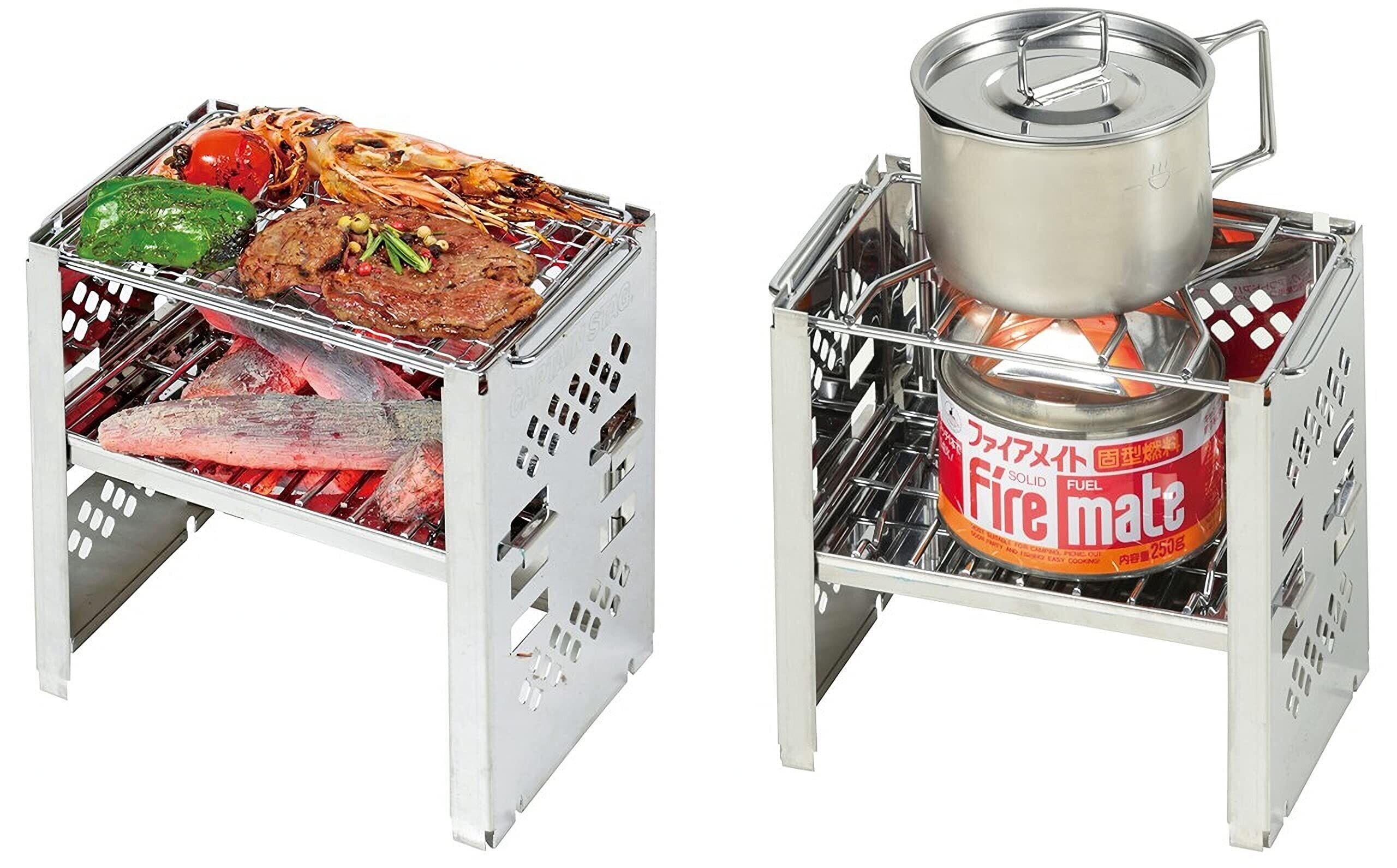 材質:本体・マルチパネル・炭受け/ステンレス鋼、ゴトク・アミ・目皿/鉄(クロムめっき)、収納バッグ/ポリエステル、原産国:中国