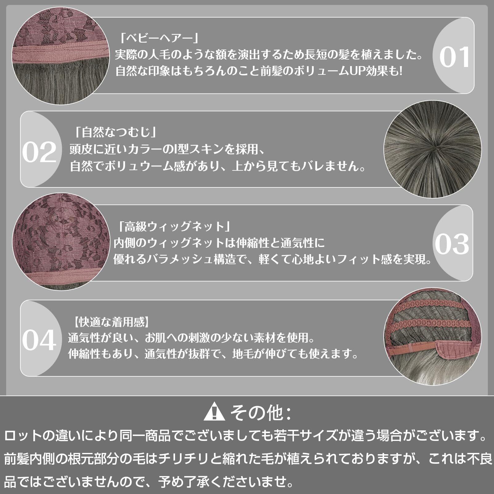 ❀商品特徴:ふんわり張り付かない前髪のふかし加工、前髪の根元に短い毛をいれた「ふかし加工」で、額に張り付かずふんわり!高級なファイバーでウィッグ特有のテカリがなく、自然感たっぷり。分け目は人工頭皮(スキン)付きなので、上から見られてもとっても自然。分け目で髪型の印象も変わり、簡単にイメージチェンジ。アジャスター付きなので、個々の頭の大きさに合わせて段階調節することができる!