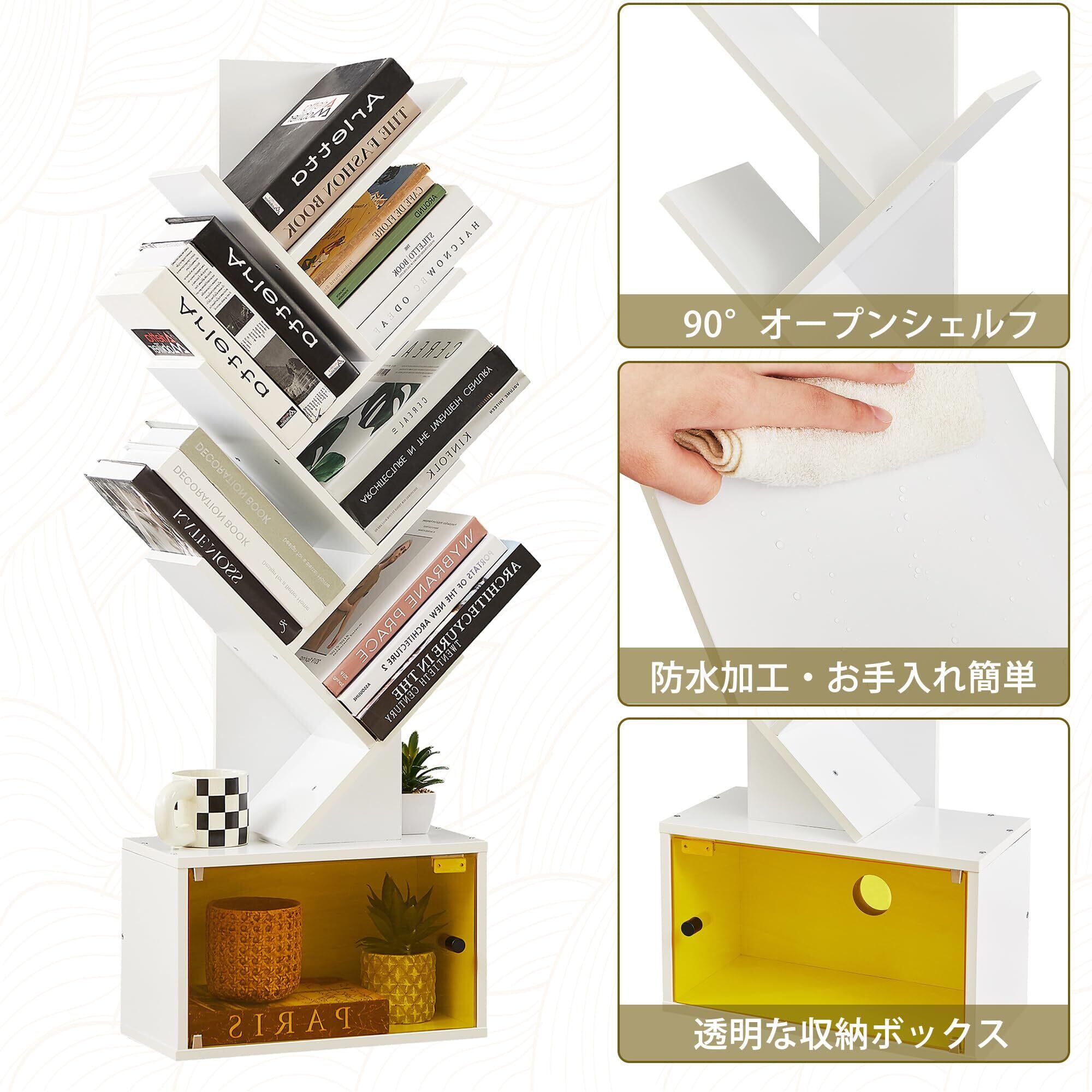 【安定性抜群・大容量】VECELOのツリー型本棚はしっかりと四角い底がある縦長のデザインで、収納物が多いほど安定性が優れていきます。そして、ツリー型のデザインは6段の幅15cmの斜め棚と幅38x奥行20x高さ22.4cmの収納ボックスがあり、高さを充分に利用し、限られたスペースを最大限に活かしています。一人暮らしの部屋や狭いスペースにぴったりした書架です。