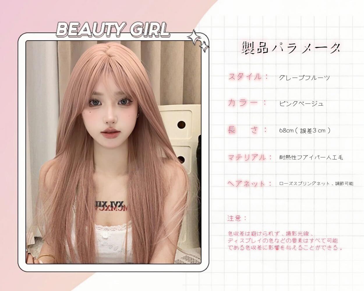 Sizuuenn 女性用 レディースフルウィッグ ロングヘア ストレート ぱっつん前髪 ピンク ウィッグ 「グレープフルーツ」 ピンクベ一ジュ 耐熱ウィッグ 高温ヘア糸 コスプレかつら 専用ネット イベント 学園祭 文化祭 撮影用 変装用 | Bloomia