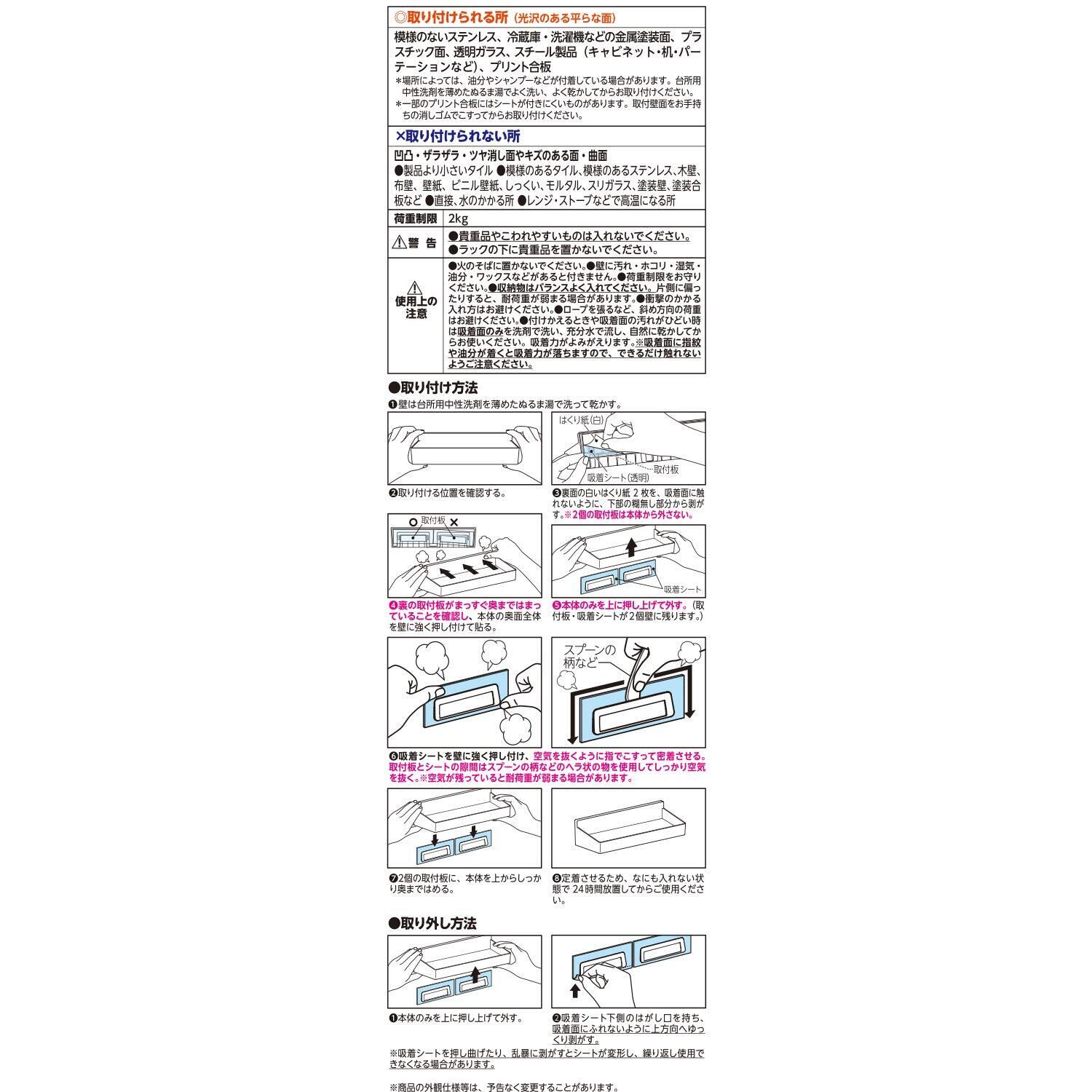 ●透明な吸着シート取り付けなので、はがし跡が残らず、吸盤やマグネットと同じなめらかな平面に取り付けができます。