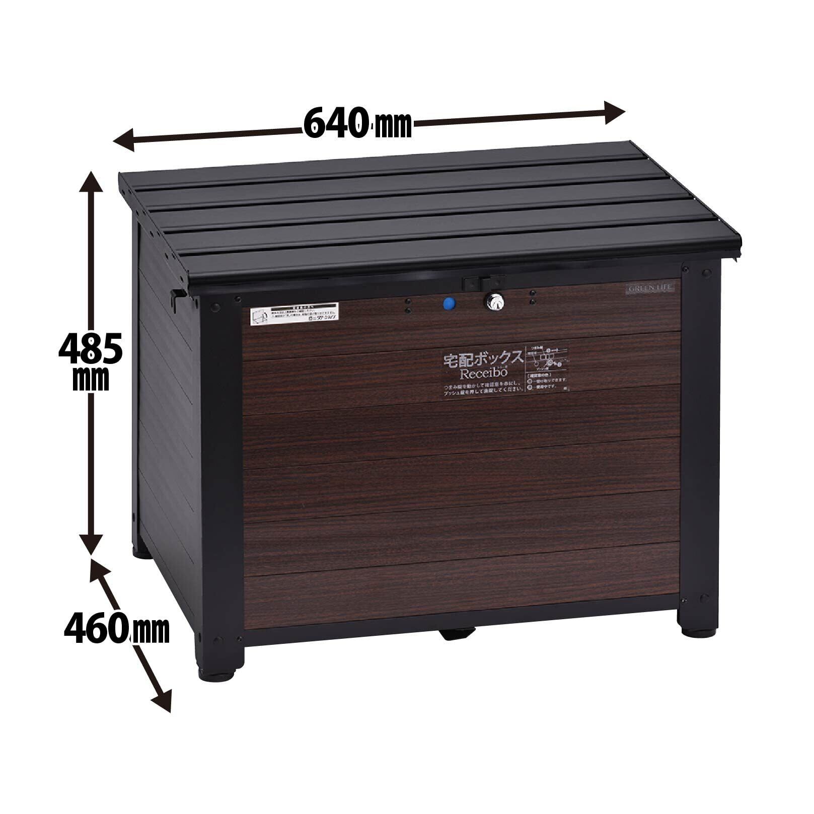 グリーンライフ(GREEN LIFE) 宅配ボックス 大容量 屋外 戸建て用 ベンチ型 Receibo(レシーボ) さびにくいアルミ製 置き配 不在受取 防犯対策 鍵付き ブラック×木目調 TRA-64M(MBK)