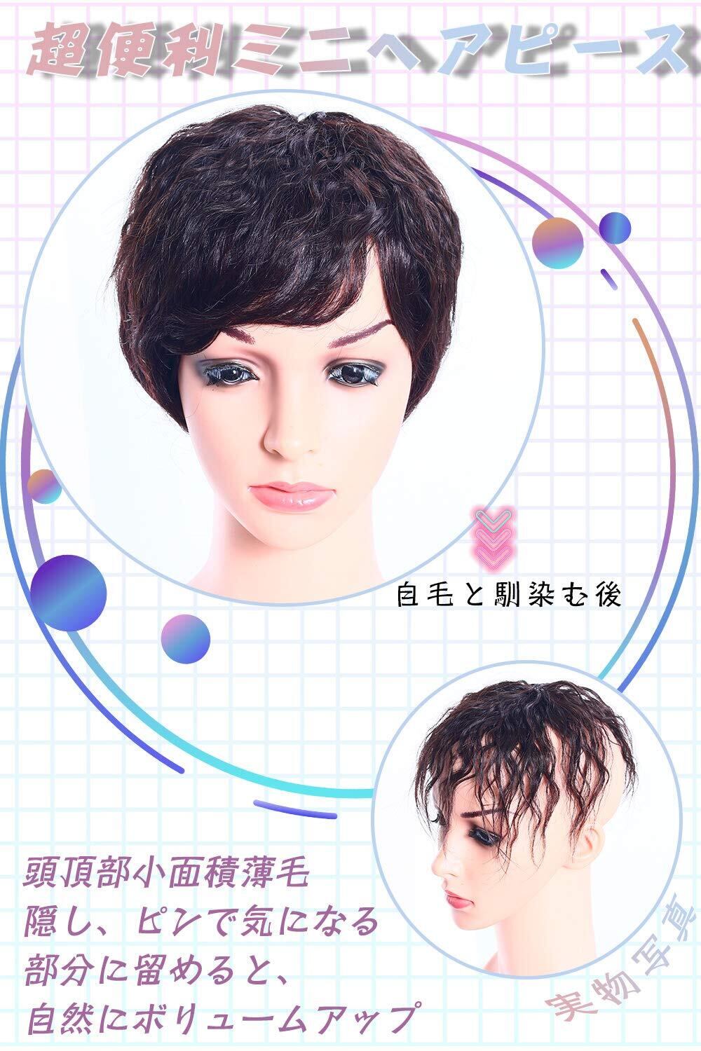 HIYE 部分ウィッグ 100%人毛 ヘアピース トップヘアピース カール ショート ウィッグ 女性用 ファッション 使いやすい 軽量 通気性 ポイントウィッグ 医療用 白髪隠れ 脱毛症 薄毛隠し (自然色)