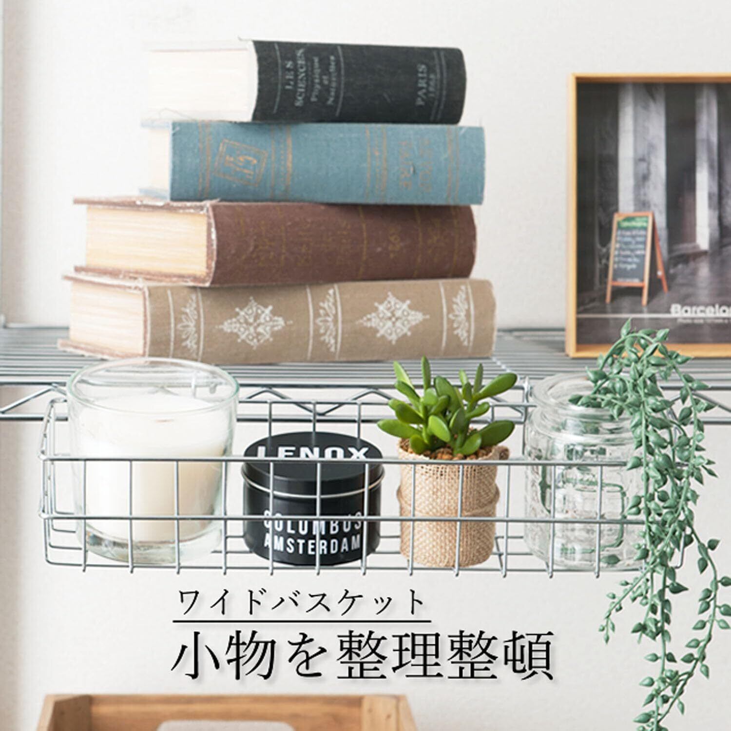 ドウシシャ ルミナス ラック スチールラックパーツ ワイヤーバスケット 吊り下げ カゴ 掛けボックス 大きめ ワイド 浅型 幅35×奥行10×高7cm 耐荷重2kg 雑貨小物収納 キッチンツール収納 リモコン 調味料 ベルト LSK-B3507 | Bloomia