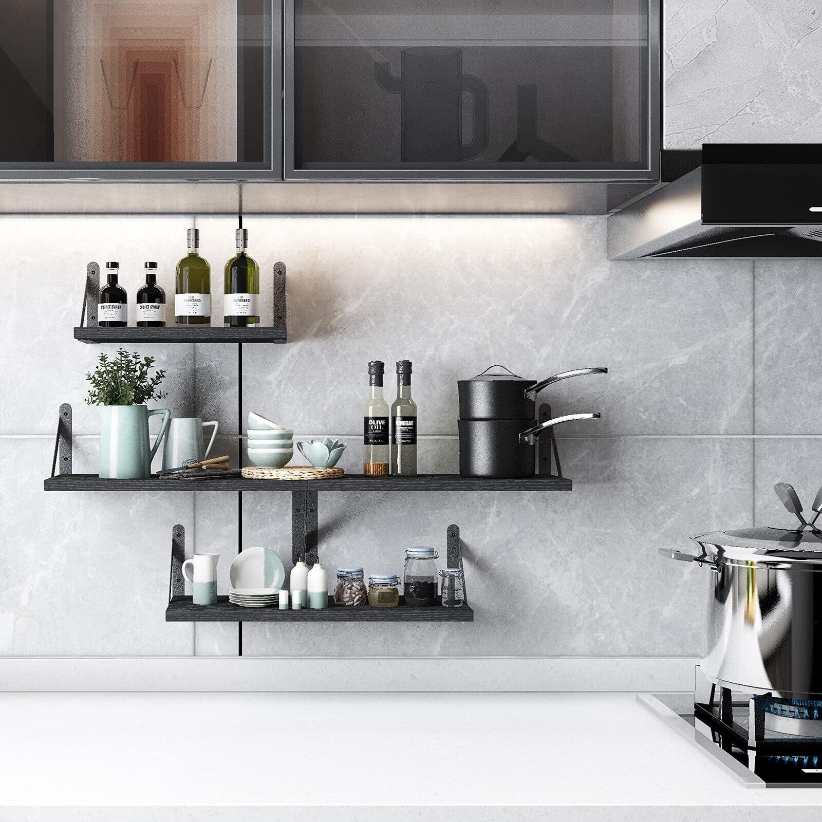 HASONA ウォールシェルフ 3個セット 壁掛け棚 壁 棚 ラック おしゃれ 天然木製 ウォールラック 飾り棚 玄関/キッチン/トイレ/洗面所/寝室 取り付け簡単 ブラック