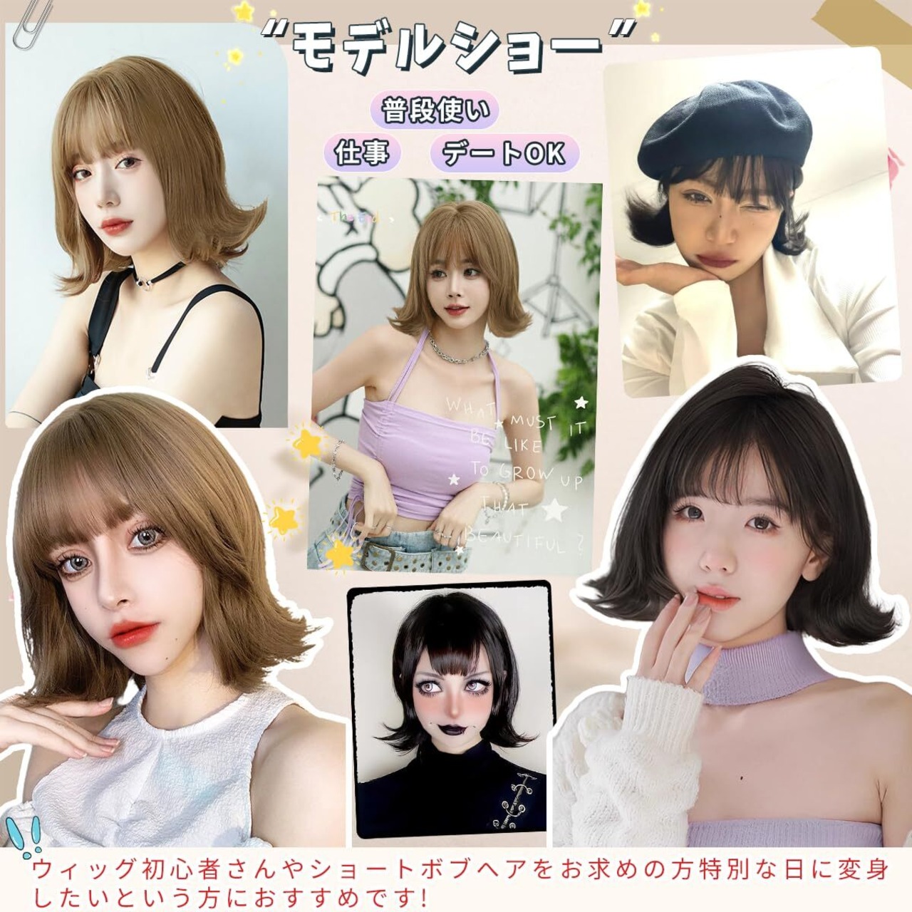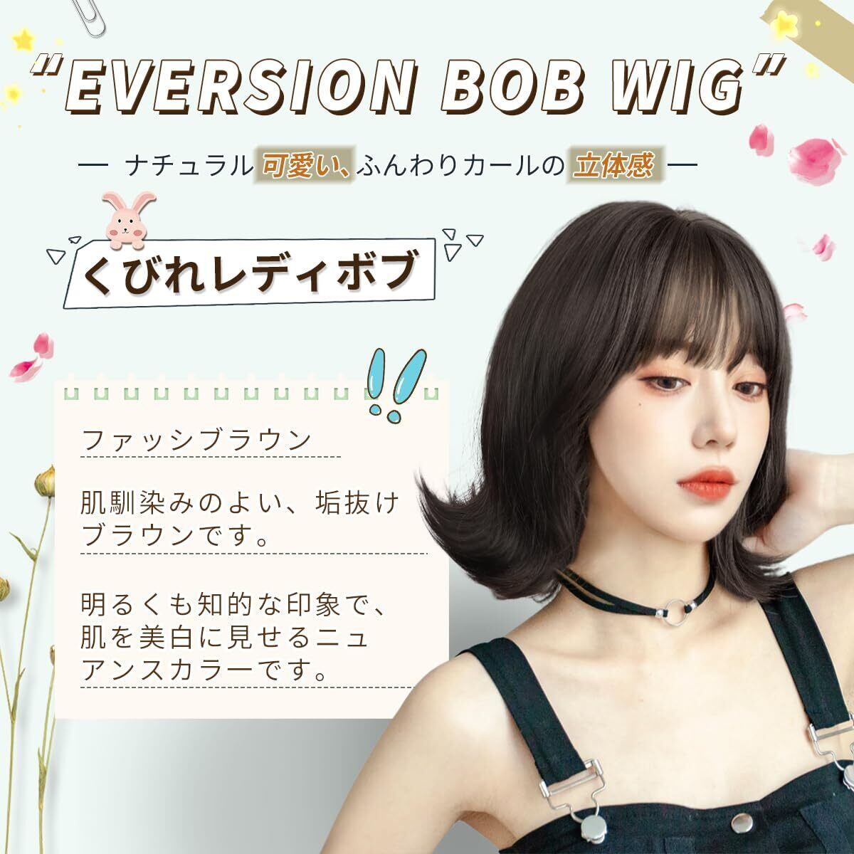 【ファッションボブウィッグ】ふんわりカールが人気の外ハネボブスタイル。大人かわいいへアスタイルで個性的な印象を演出。毛先のウェーブパーマは自由に切り替え可能、気分に合わせて内巻きと外巻きの2スタイルに設定可能です。ボブヘアで可愛らしくも大人らしくもなら、普段使いしやすい。ファッションに気軽にウィッグを取り入れてオシャレを楽しむ。