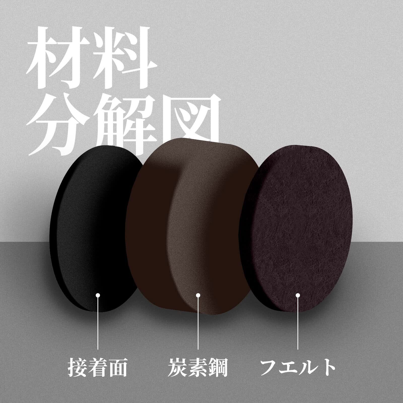 【商品仕様】円形:直径6cm 高さ32mm カラー:ブラウン 材質:両面テープ+炭素鋼+フェルト 適応サイズ: 6×6cm以下の角脚、直径6cm以下の丸脚
