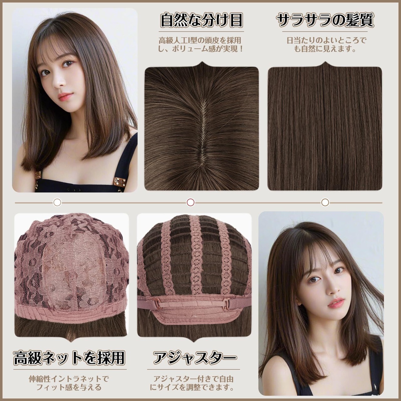 BARSDAR ウィッグ ストレート ミディアム セミロング レディース wig カツラ 女装 フルウイッグ 自然 黒茶 髪 小顔 可愛い 自然 耐熱 ネット付き チョコブラウン
