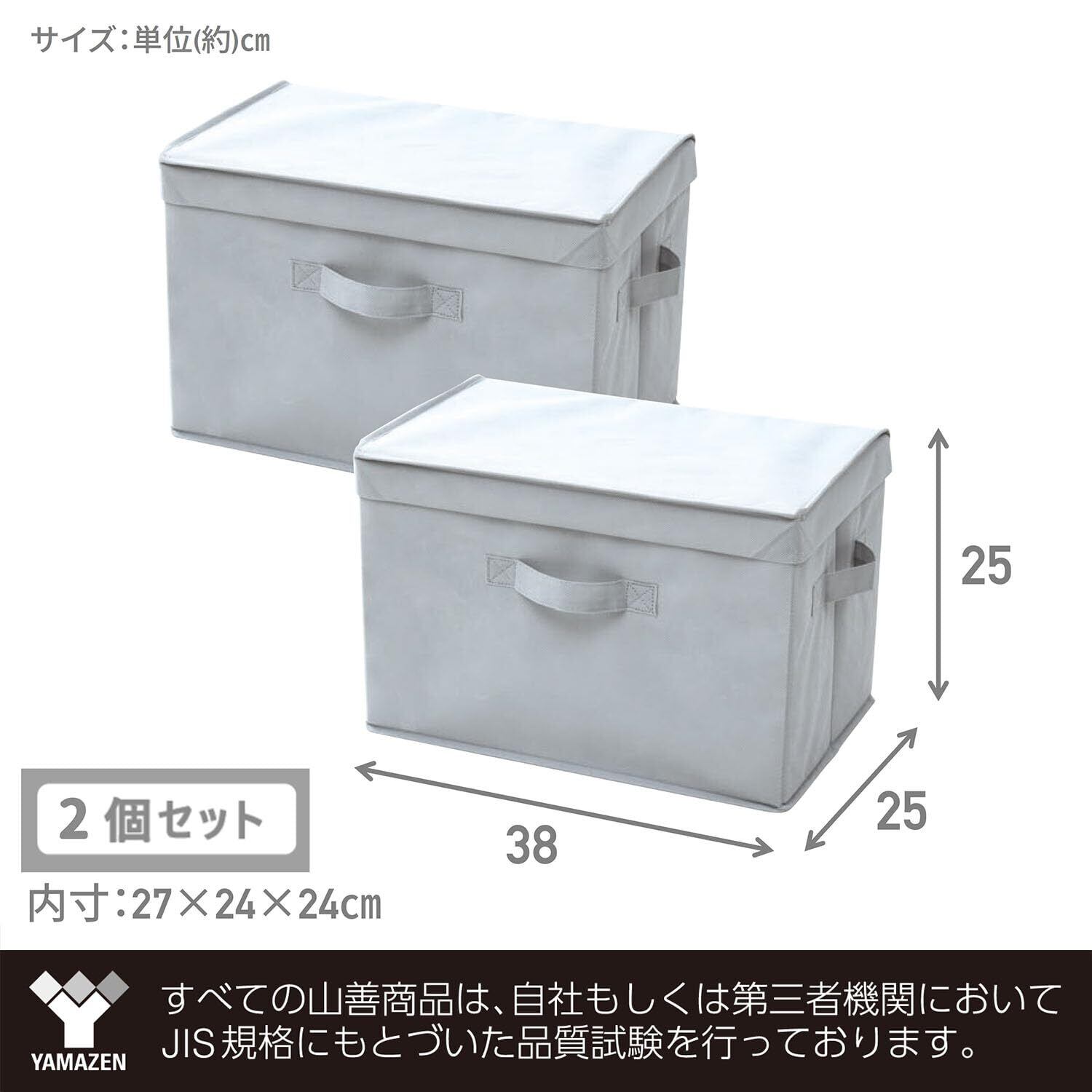 ●2個セット●本体サイズ:幅38×奥行25×高さ25cm●本体:不織布 芯材:厚紙●東証プライム(株)山善で扱うすべての山善商品は、自社もしくは第三者機関において、JIS規格に基づいた品質試験を行っております。。