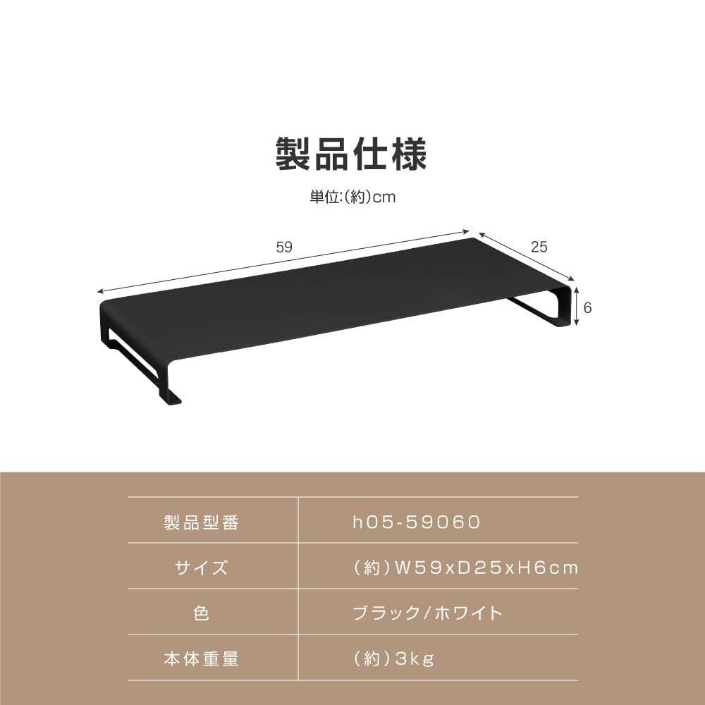 モニター台 モニタースタンド スチール製 机上台 横幅59cm 高さ6cm モニター 台 液晶モニター台 プリンター台 収納 ブラック ホワイト 机上ラック 机上台 パソコン台 マルチディスプレイ オフィス 自宅用 テレワーク 在宅勤務 h05-59060-BK