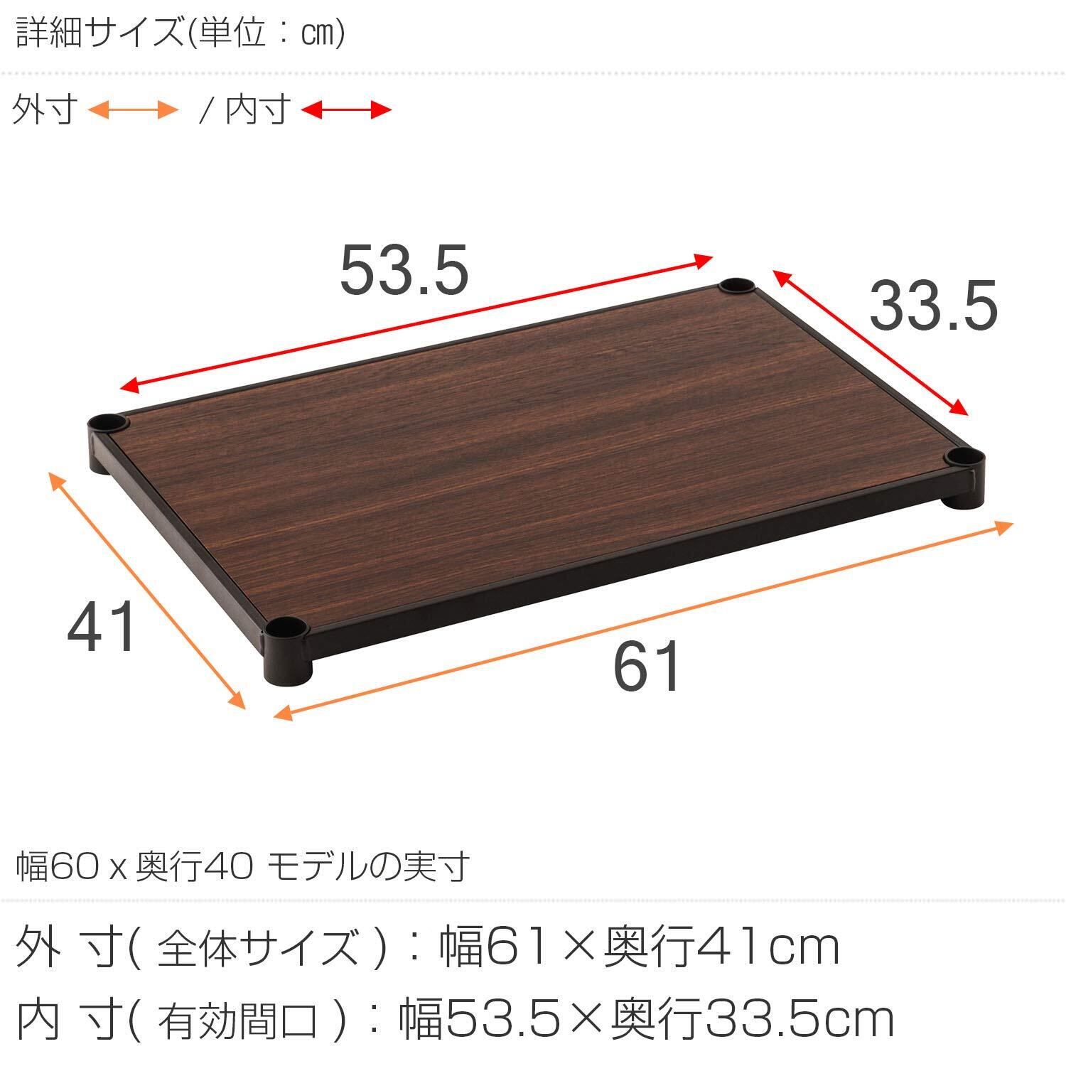 ドウシシャ ルミナス ノワール ラック スチールラックパーツ ウッドシェルフ 木製棚板 ポール径25mm 幅61×奥行41cm NO6040-WD スリーブ無し 黒 スチール製フレーム 天板 耐荷重80kg 業務用 頑丈 幅60 奥行40モデル