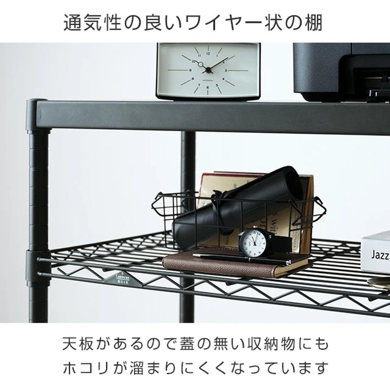 ホームユースに特化した商品ラインナップでマイルーム収納にこだわった木棚と黒の組み合わラック。
