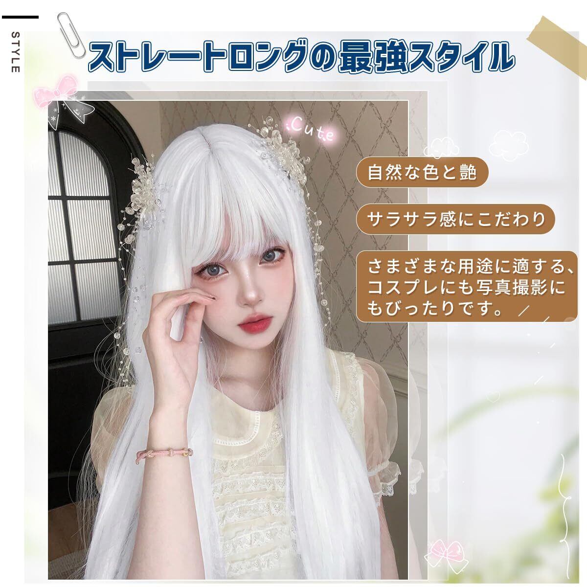FORCUTEUウィッグ 白髪 ロング ストレート フルウィッグ 女装 コスプレ レディーズ かつら 女性 人気 耐熱 ネット/櫛付き