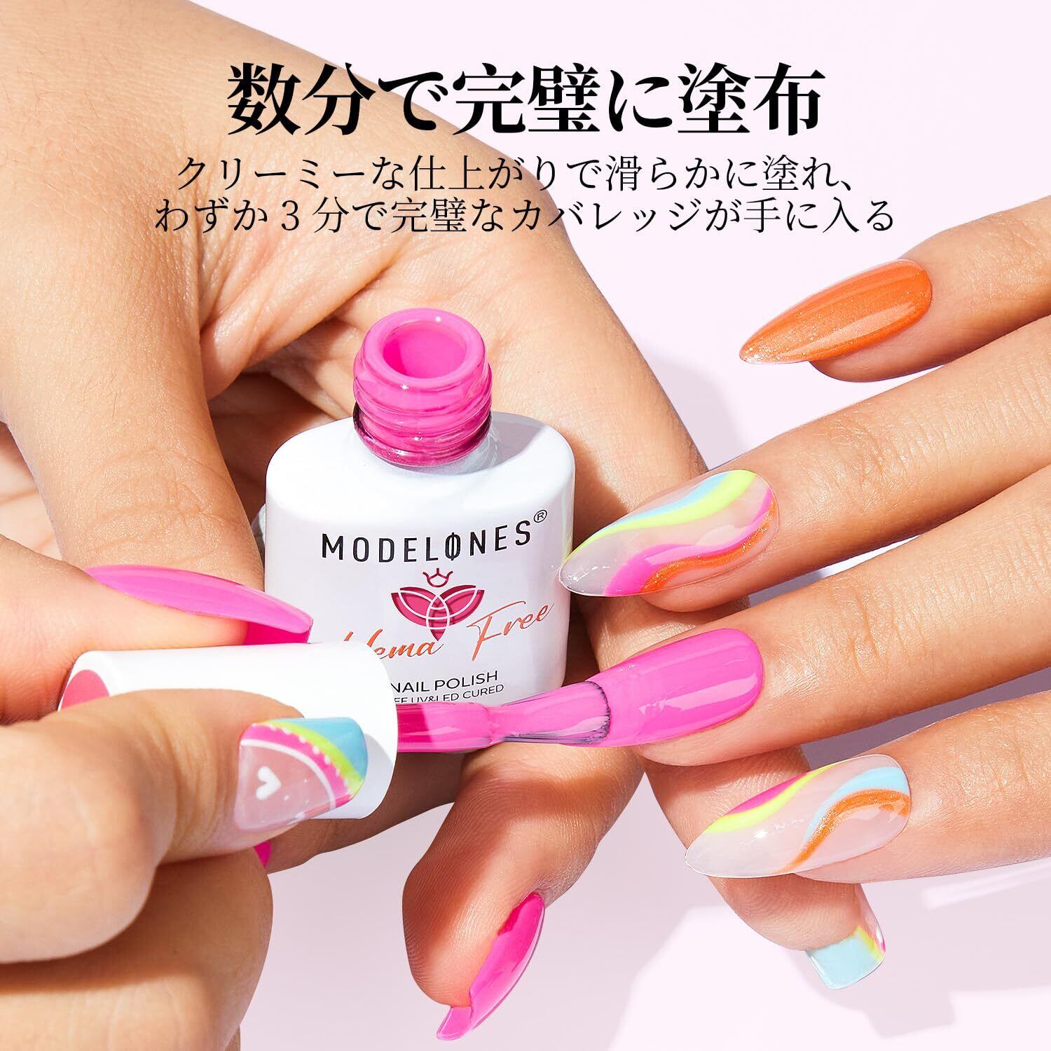 優しいフォーミュラ:HEMA(ヒドロキシエチルメタクリレート)と TPO(2,4,6 - トリメチルベンゾイルジフェニルホスフィンオキシド)を配合していない特別な処方で、敏感肌にも適しており、アレルギーや肌への刺激のリスクを低減できます。Modelones の新しいジェルネイルポリッシュは、敏感肌やアレルギー体質のユーザーに最適で、より安全なマニキュア体験を提供します。