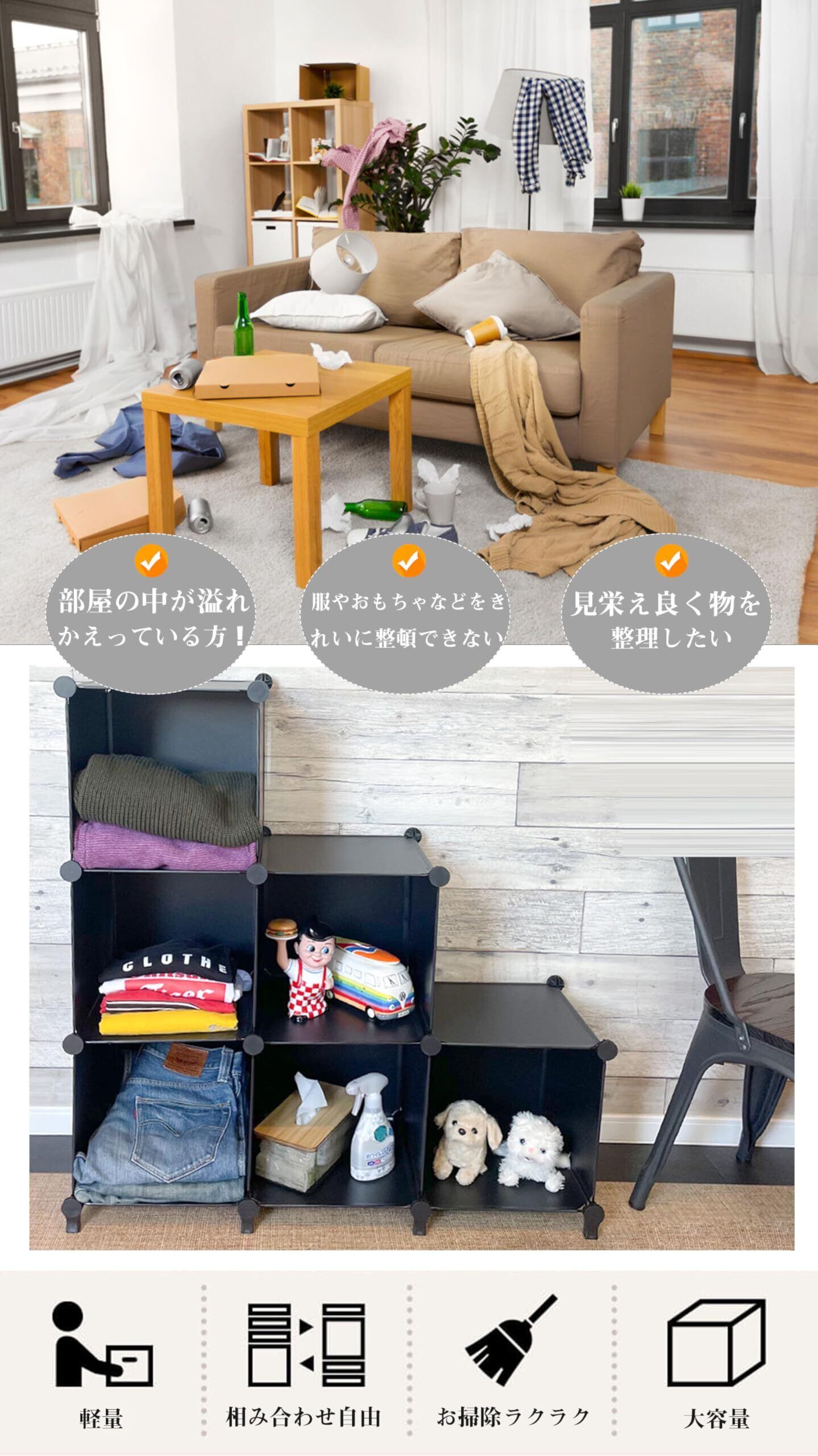 【大容量で収納もレイアウトもスマートに】 収納ボックス1個あたりサイズ:W30×D30×H30cm。棚板を支えるフレームは頑丈なスチール製収納棚で、1ラックあたりの耐荷重は3.5kg まで耐えられる。●棚板:環境に優しく、耐久性にも優れたポリプロビレン材質で、いつでもお使いいただける。●フレーム:頑丈なスチール製で、棚板をガッチリ支えてかなり安定感がある。●連結パーツ:高品質ABS樹脂製で、強度と耐衝撃性を両立。