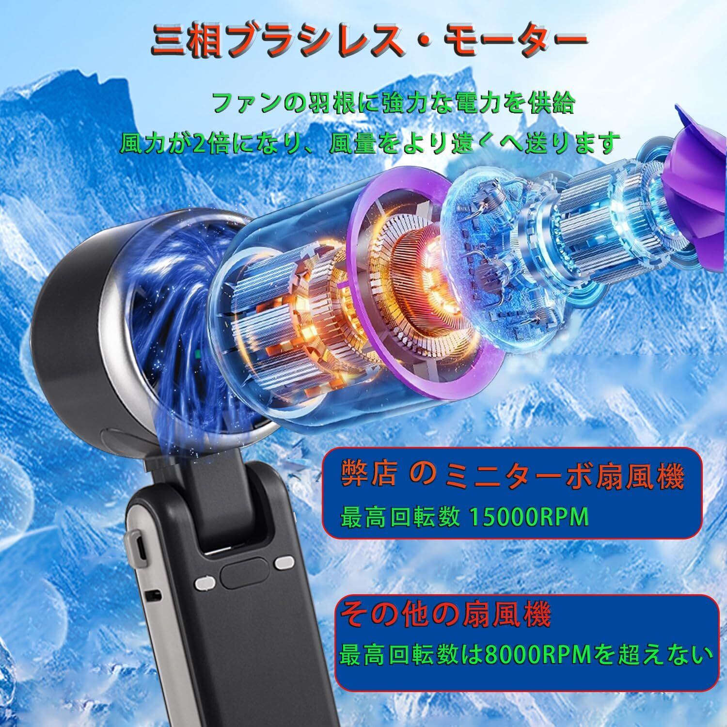 【ブラシレスモーター設計の新技術 ・爆発する強風!】当社の手持ち扇風機の最高回転速度は通常の個人用扇風機の3倍で、最大15000 RPMに達します。最大風速は9m/sに達することもあります。三相ブラシレスモーターと3600mAhバッテリーの組み合わせにより、風速、パワー、耐久性が大幅に向上します。1回の充電で2〜12時間冷却できます。この手持ち扇風機の本体はABS素材で作られており、精密なプラスチックスプレーコーティング技術が採用されています。 滑らかな円筒形のデザインにより、優れた触感を提供します。