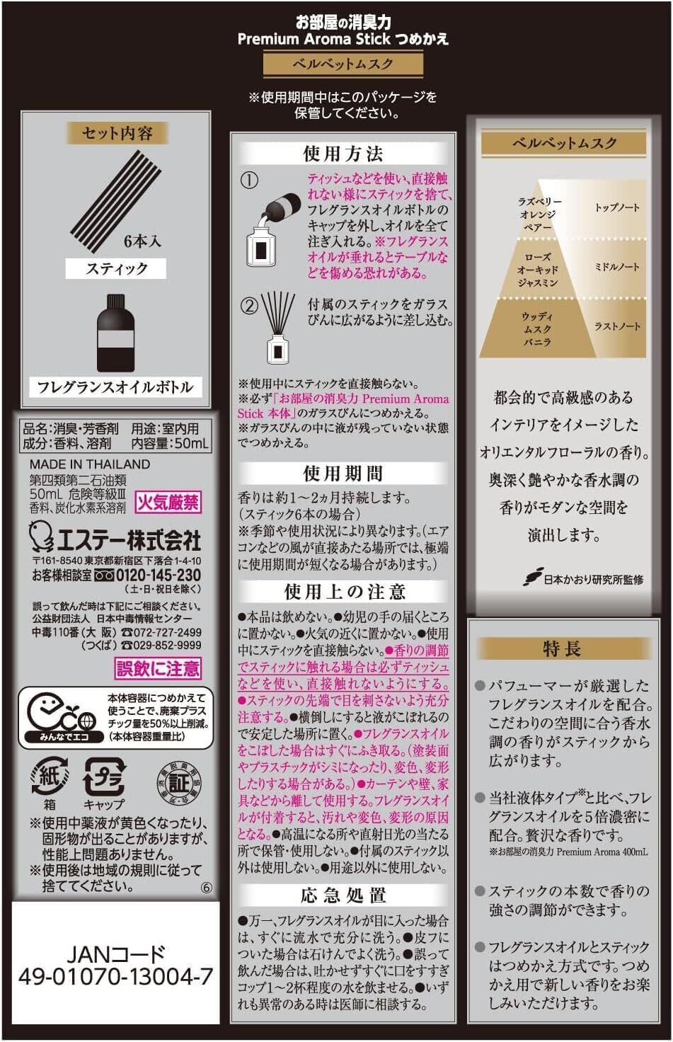消臭力 プレミアムアロマ [まとめ買い] 部屋用 スティック ベルベットムスク つめかえ 50mL×3個 ディフューザー 玄関 リビング ルームフレグランス 消臭 芳香剤