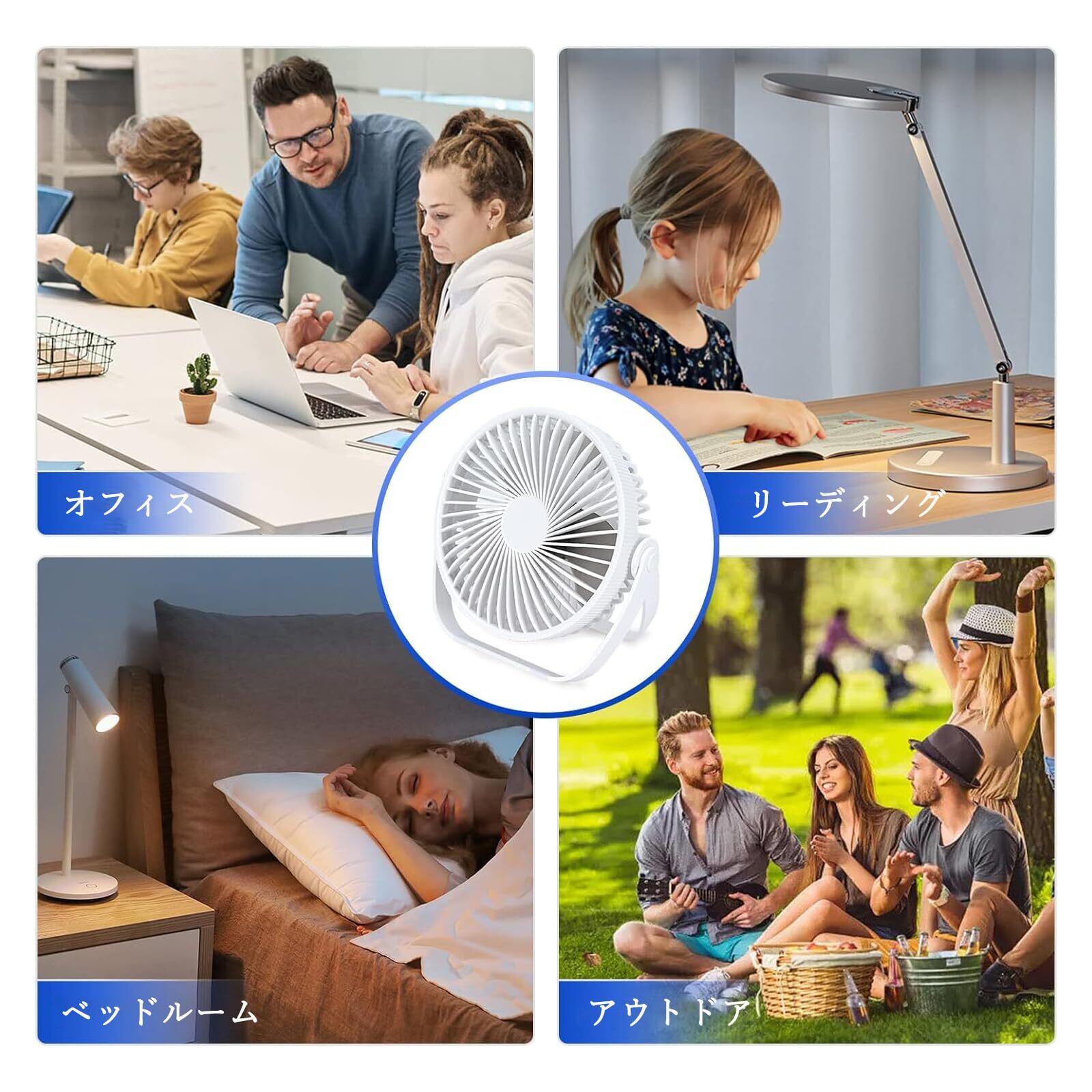 卓上扇風機 静音 USB扇風機 キャンプ扇風機 360度角度調整 3段階風量 パワフル送風 USB給電と充電式 TYPE-C デスクファン 吊り上げ ファン 熱中症対策 オフィス/家/学校/車/キッチン/アウトドアに適用 (ホワイト) | Bloomia