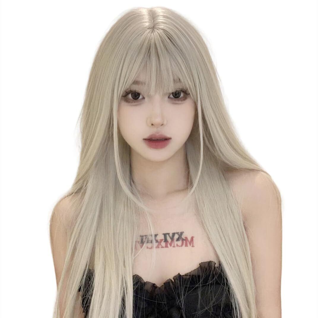 Sizuuenn 女性用 ロングヘア レディー ロングストレート ぱっつん前髪 金髪 プラチナ オフゴールド ウィッグ 「金髪の女神」 小顔 自然 耐熱ウィッグ 高温ヘア糸 コスプレかつら 専用ネット イベント 学園祭 文化祭 撮影用 変装用 | Bloomia