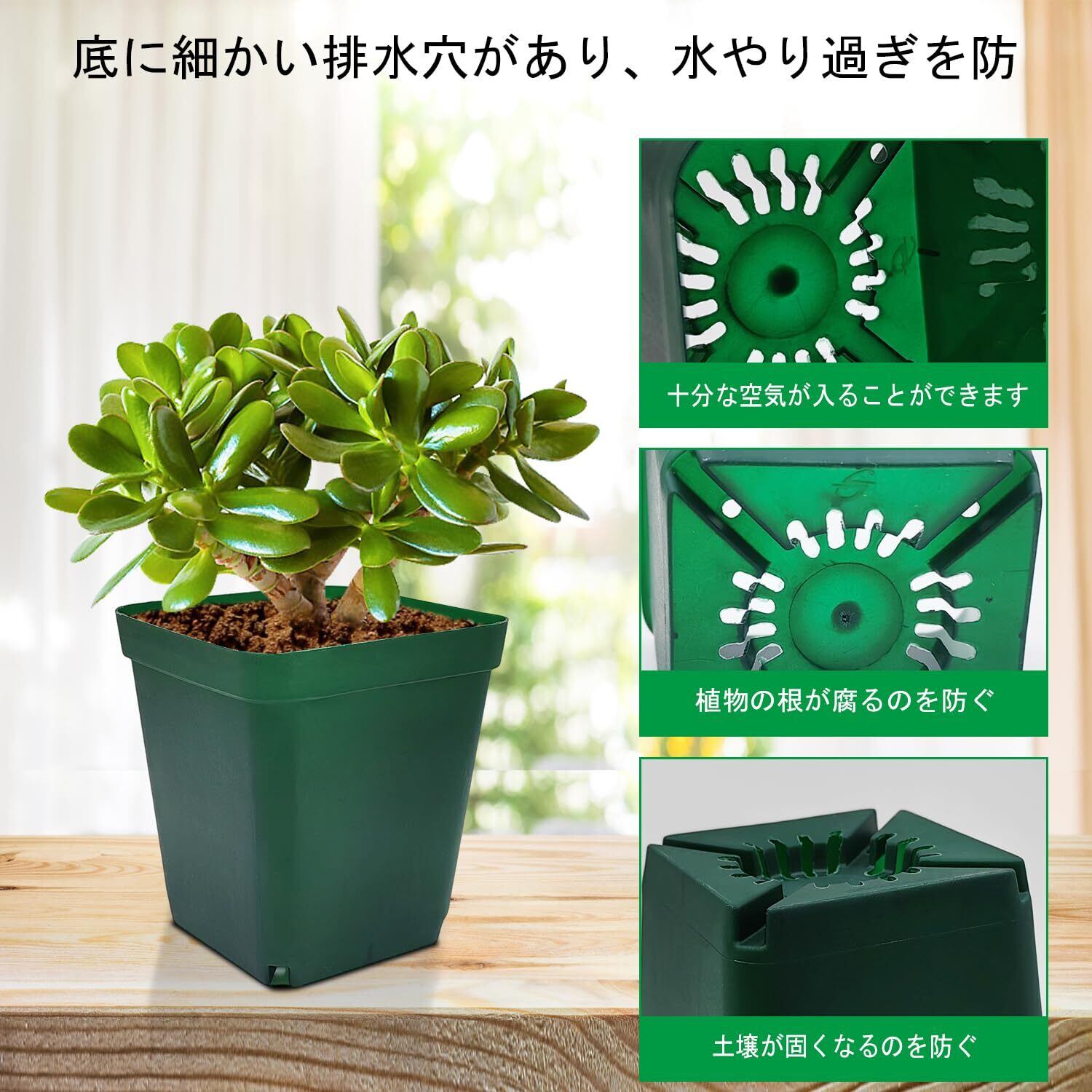 RooTrimmer 育苗ポット 8cm 100個入り 正方形 苗ポット、植木鉢 プラスチック 多肉植物 鉢、プラ鉢 種蒔きポット、育苗用ポリポット, ダークグリーン