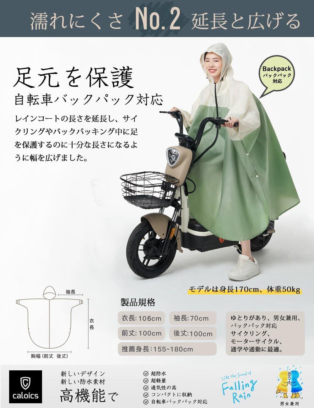 [C caloics] レインポンチョ 自転車、原付用、リュック対応【最新 拡張版 クラシックポンチョ】 レインウェア レディース メンズ レインコート 大きいサイズ ロング 雨カッパ 雨具防風防水通気性の高 通勤 通学 梅雨対策 男女兼 収納袋付き | Bloomia