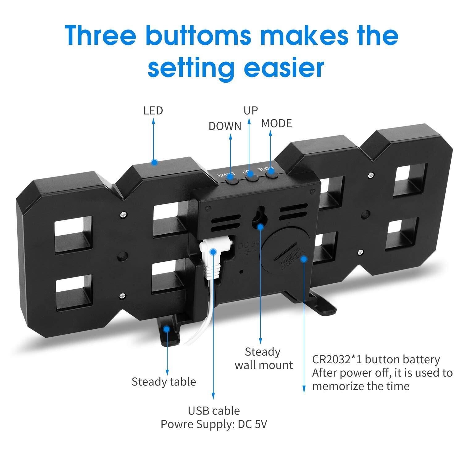 CENTOLLA 3D LEDデジタル目覚まし時計 壁掛け時計 3つの調整可能な明るさレベルを備えた