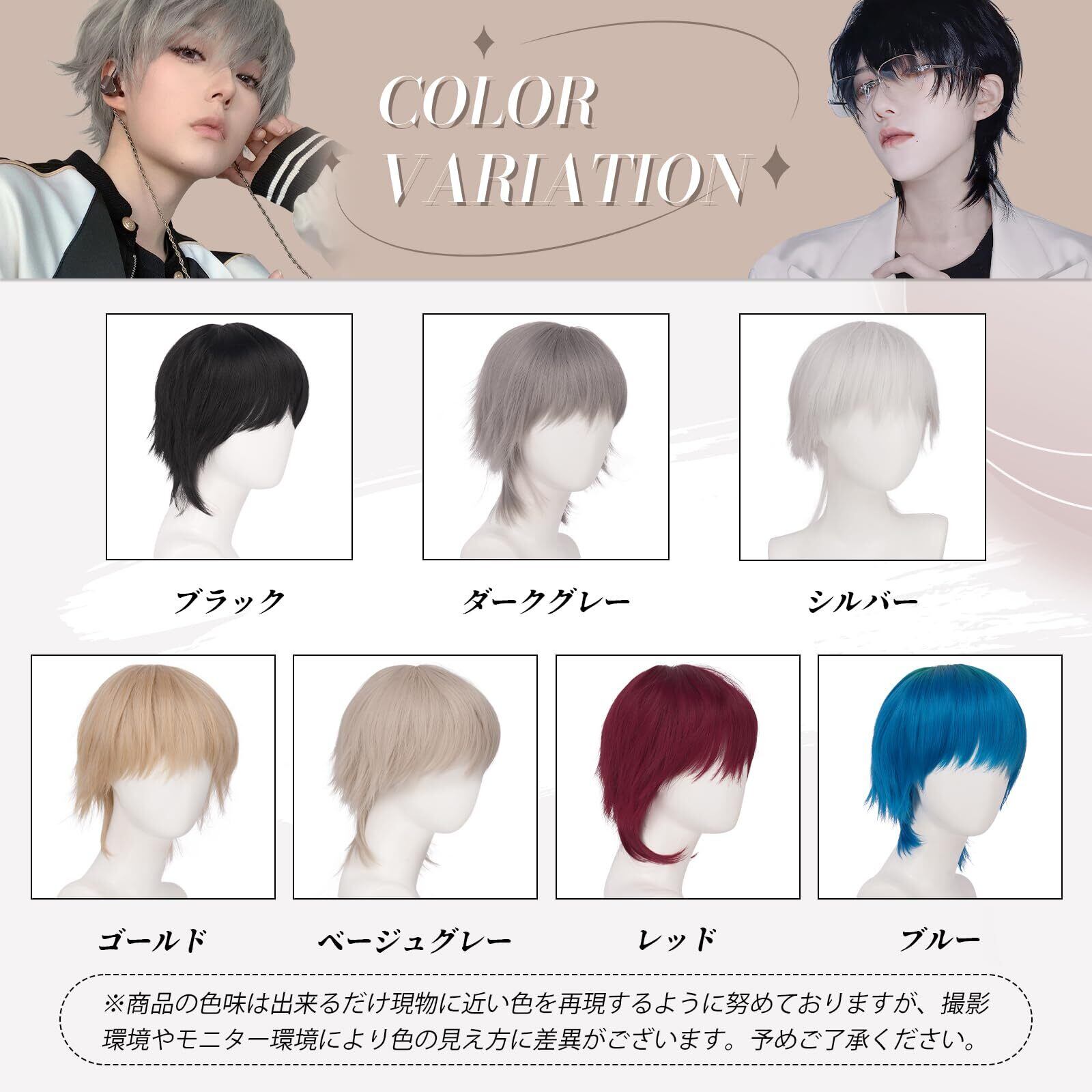 FESHFEN ウィッグ かつら メンズ ウルフ 黒髪 男性 フルウィッグ ウルフカット 男装 黒 ショート ハンサム 普段使い ゆるふわ ファッション イケメン 原宿 自然 男女兼用 耐熱 人気 ファッション ふわふわ 短髪 ネット/櫛付き ベージュグレー | Bloomia