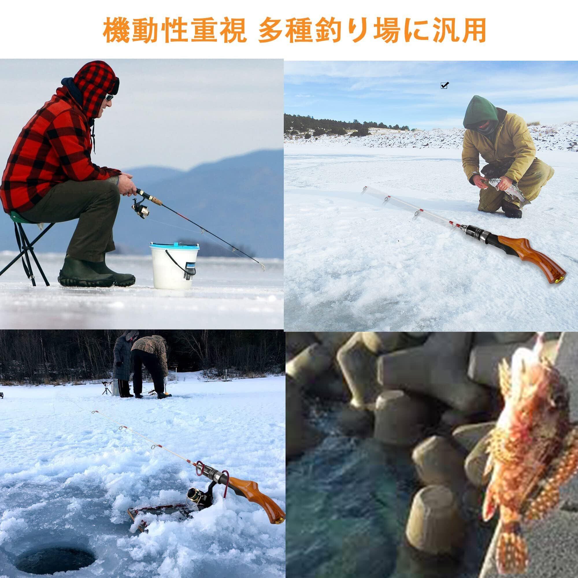 釣り竿 穴釣り 氷釣り 短竿 超コンパクトロッド 仕舞寸法59cm 並継式 ミニ釣りロッド 硬調 テトラ 堤防釣り 木目調ハンドル