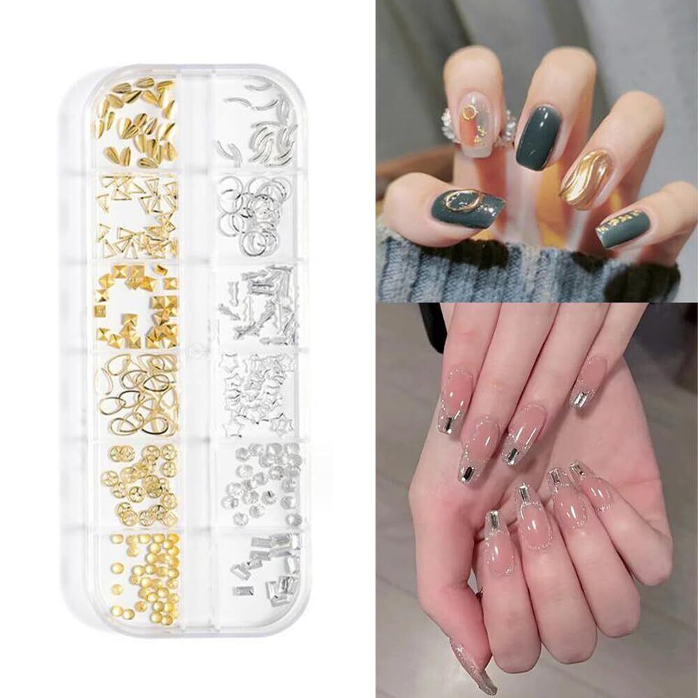 YFFSFDC ネイルパーツ 3本セット 金属パーツ ネイルデザイン アクセサリー デコパーツ 四角 三角 丸 パール フレークパーツ ネイルアート ネイルスタッズ ネイル デコレーション ゴールドネイルパーツセット (B) | Bloomia