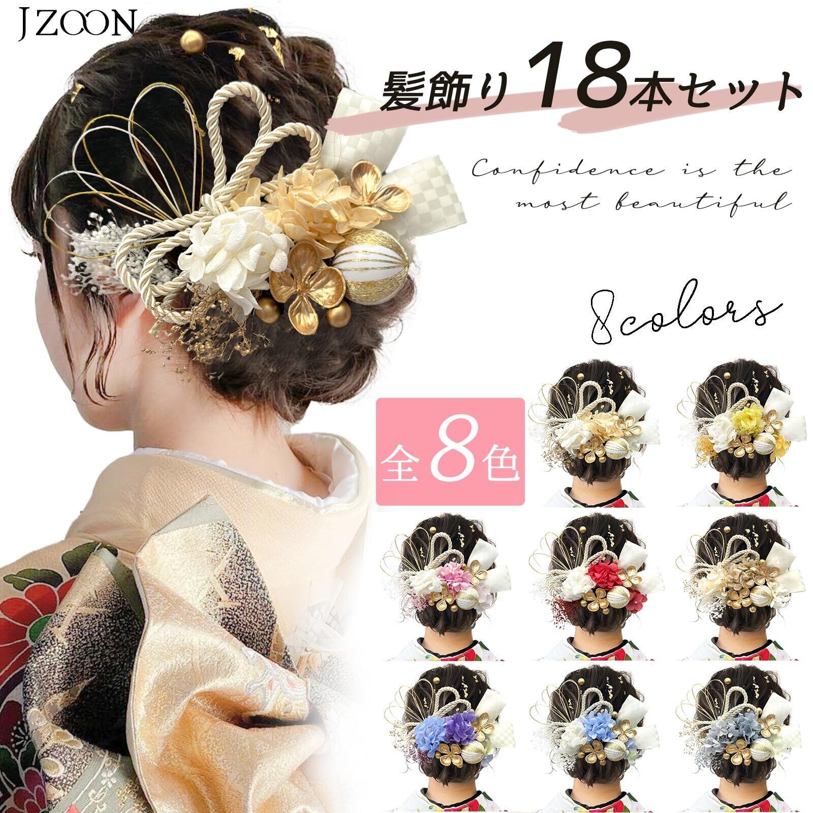 [JZOON] 髪飾りドライフラワー ダリア 造花飾り 和玉 赤 ヘアアクセサリー 成人式 水引 ヘッドパーツ あじさい 振袖 着物 卒業式 七五三 浴衣 袴 結婚式 かすみ草 和装 造花 手作り 専用ケース付き B2246 | Bloomia