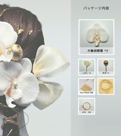 「パーツ」大輪胡蝶蘭、リボン、水引、金箔、和玉、組紐などを組み合わせて構成します。