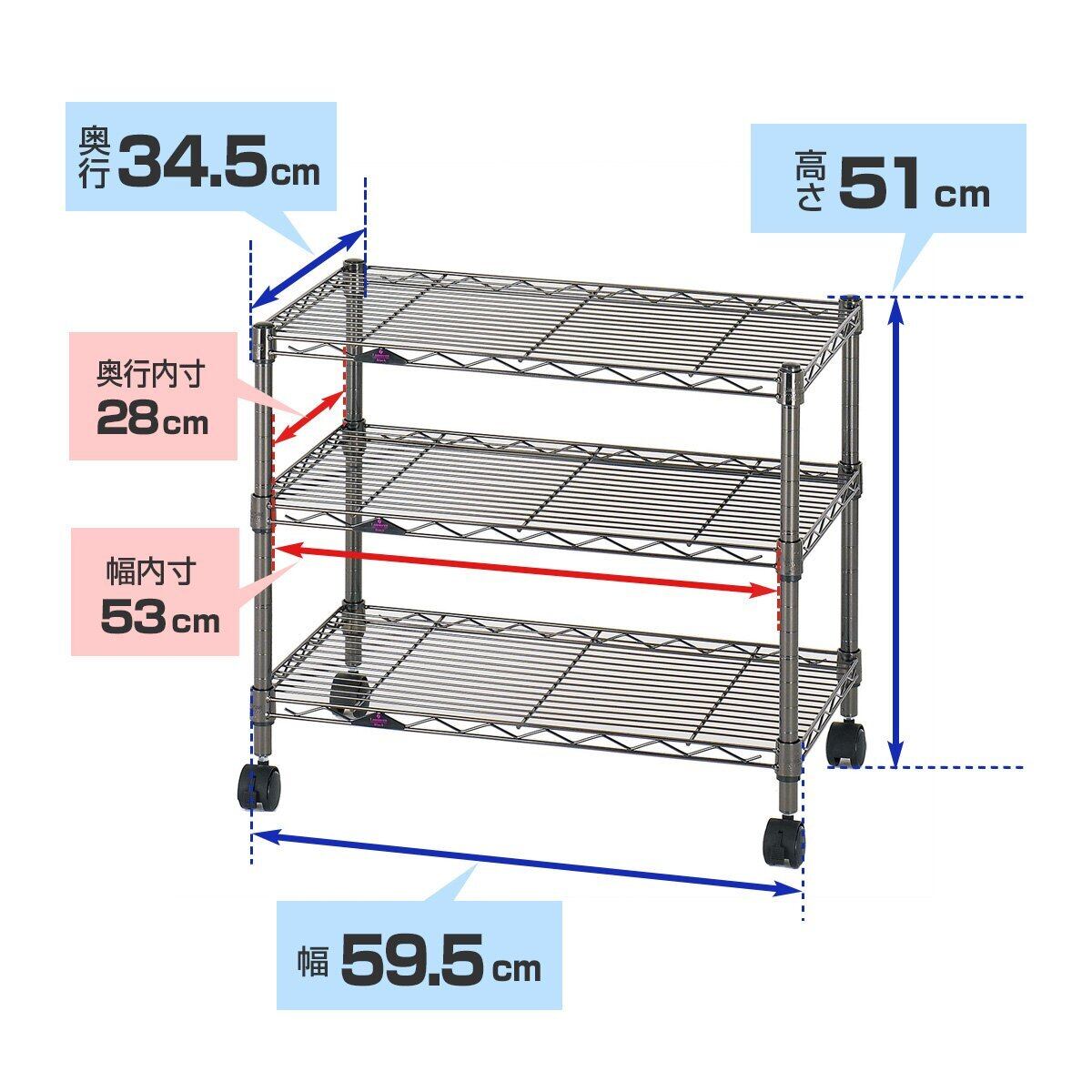 ドウシシャ ルミナス ブラック 幅60 3段 スチールラック 収納棚 艶のある黒色 幅59.5×奥行34.5×高さ51cm 全体耐荷重180kg 頑丈 キャスター付き 防錆加工 ポール径19mmパーツ対応 シェルフ TV収納 テレビラック BN5160-3 | Bloomia
