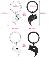[Looking] 猫 キーホルダー カップル ペア お揃い かわいい シンプル黒 白 猫ちゃん キーリング 彼女 彼氏への バレンタインデー ギフト 記念日 誕生日 恋人 友達 にプレゼト