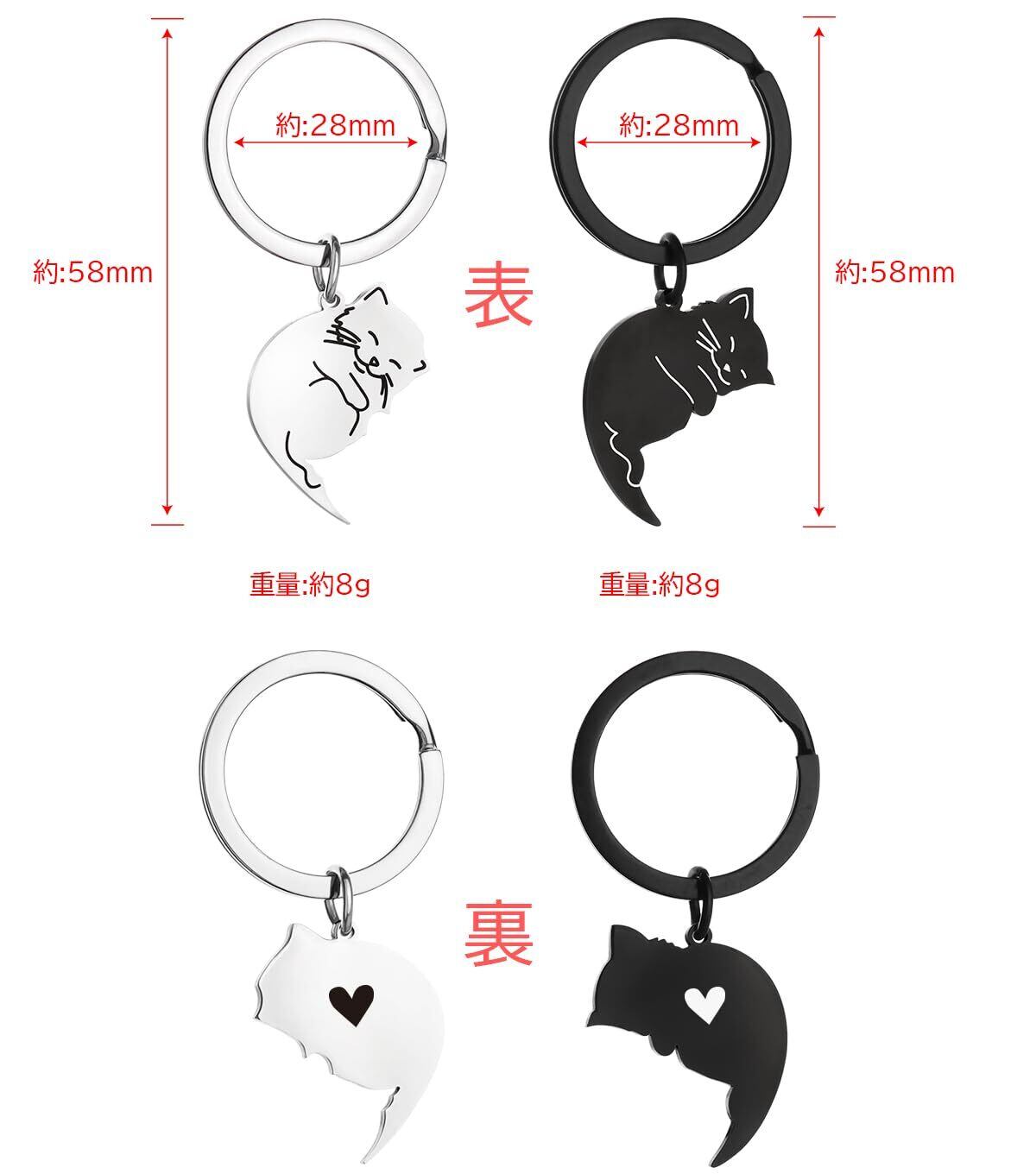 お揃いのカップル:彼と彼女へのギフト 2匹の猫が完璧に調和し、甘くて永続的な関係を象徴しています。 ボーイフレンドとガールフレンド、夫と妻、婚約者たち、親友、遠距離カップルたちはこのキーホルダーを通じて自分の感情を伝えることができます。 そのほか、服、カバンなどの装飾にも非常に適しています。