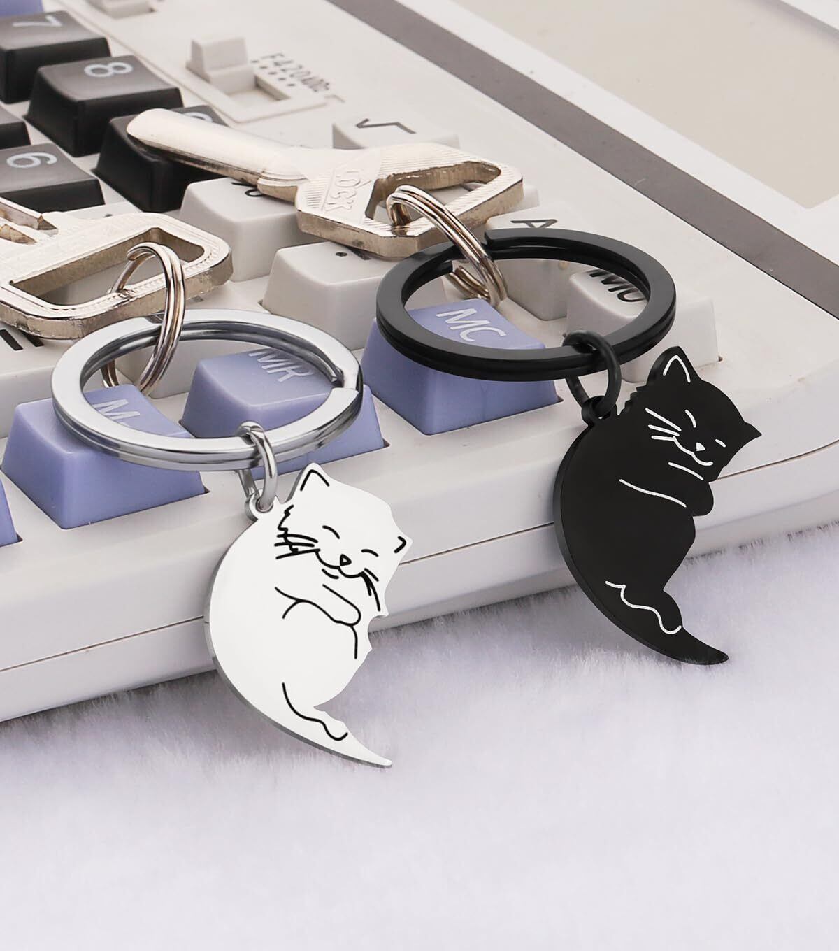[Looking] 猫 キーホルダー カップル ペア お揃い かわいい シンプル黒 白 猫ちゃん キーリング 彼女 彼氏への バレンタインデー ギフト 記念日 誕生日 恋人 友達 にプレゼト | Bloomia