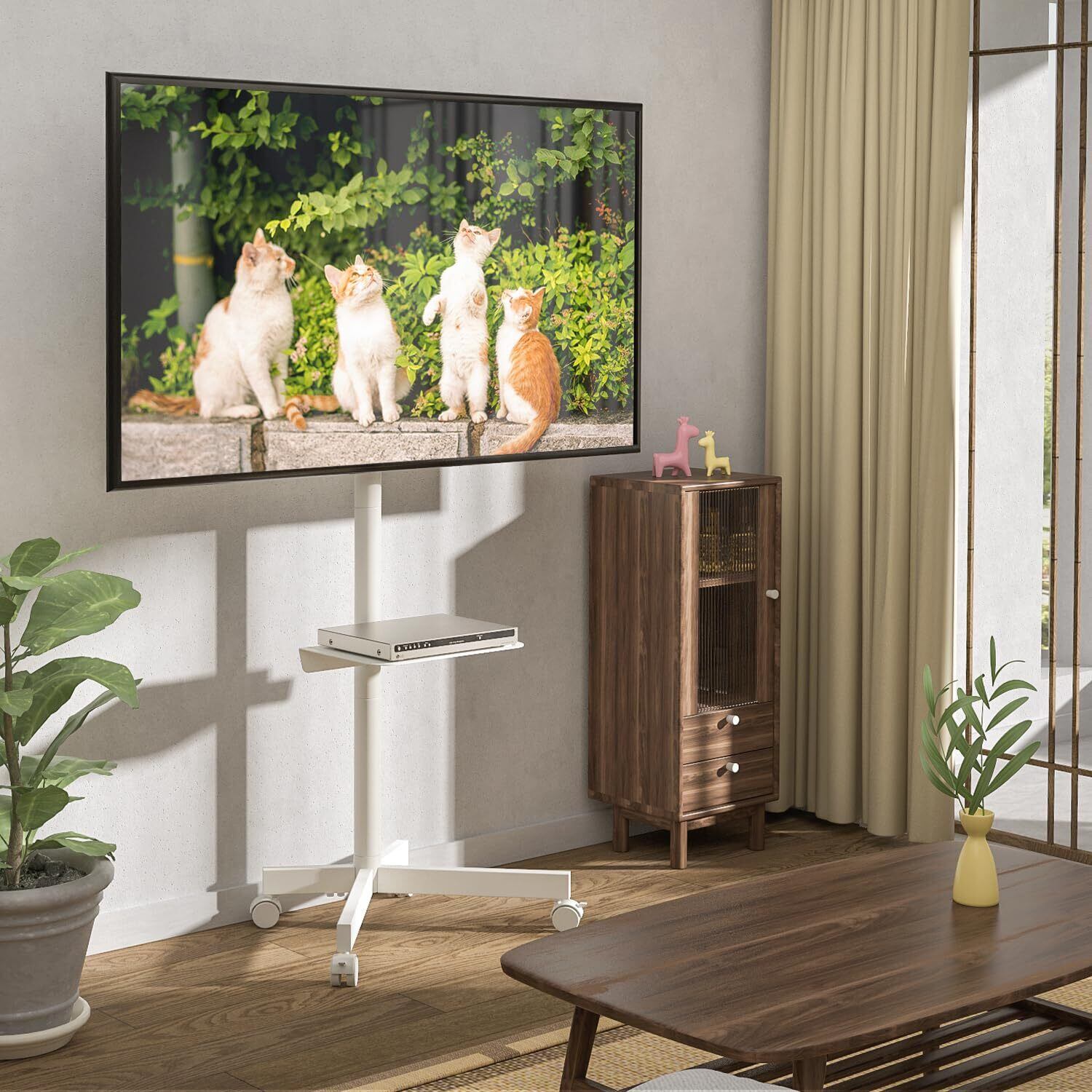 テレビスタンド キャスター付き テレビスタンド ハイタイプ/ロータイプ 23~55型 テレビ用スタンド壁掛け 上下傾斜 tvスタンド VESA40x40 ㎝まで 耐荷重40 KG 家用 会社用 ホワイト 1 | Bloomia