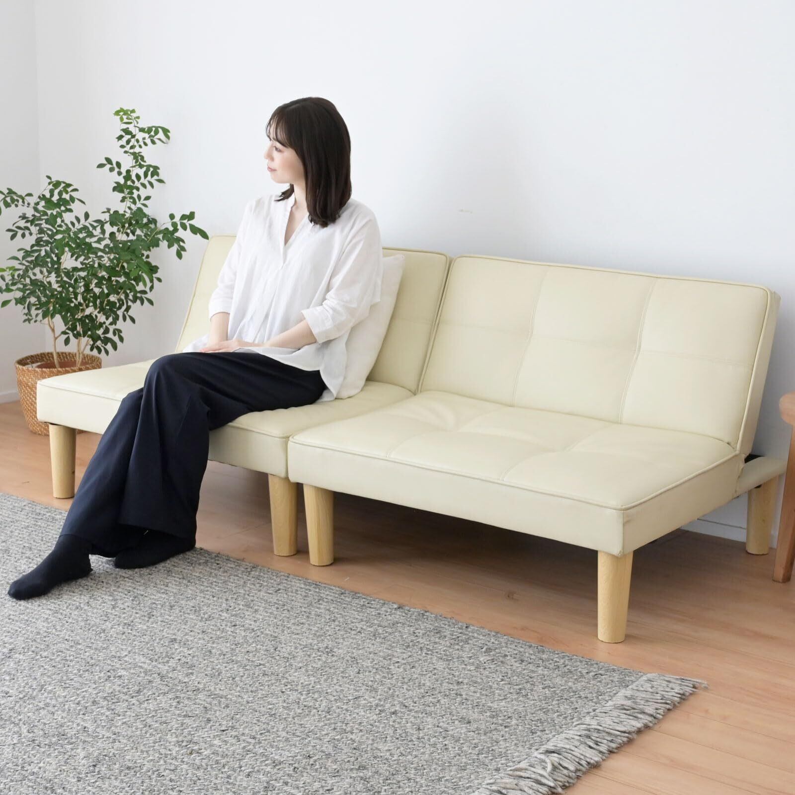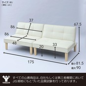 ●本体サイズ(約):幅175×奥行81.5(最小81.5/最大90)×高さ33(最小33/最大67.5)cm●座面の高さ : 33cm●構造部材:フレーム/天然木、脚部/ポリプロピレン●張り材:合成皮革●クッション材 : ウレタンフォーム、鋼製ばね●東証プライム(株)山善で扱うすべての山善商品は、自社もしくは第三者機関において、JIS規格に基づいた品質試験を行っております。