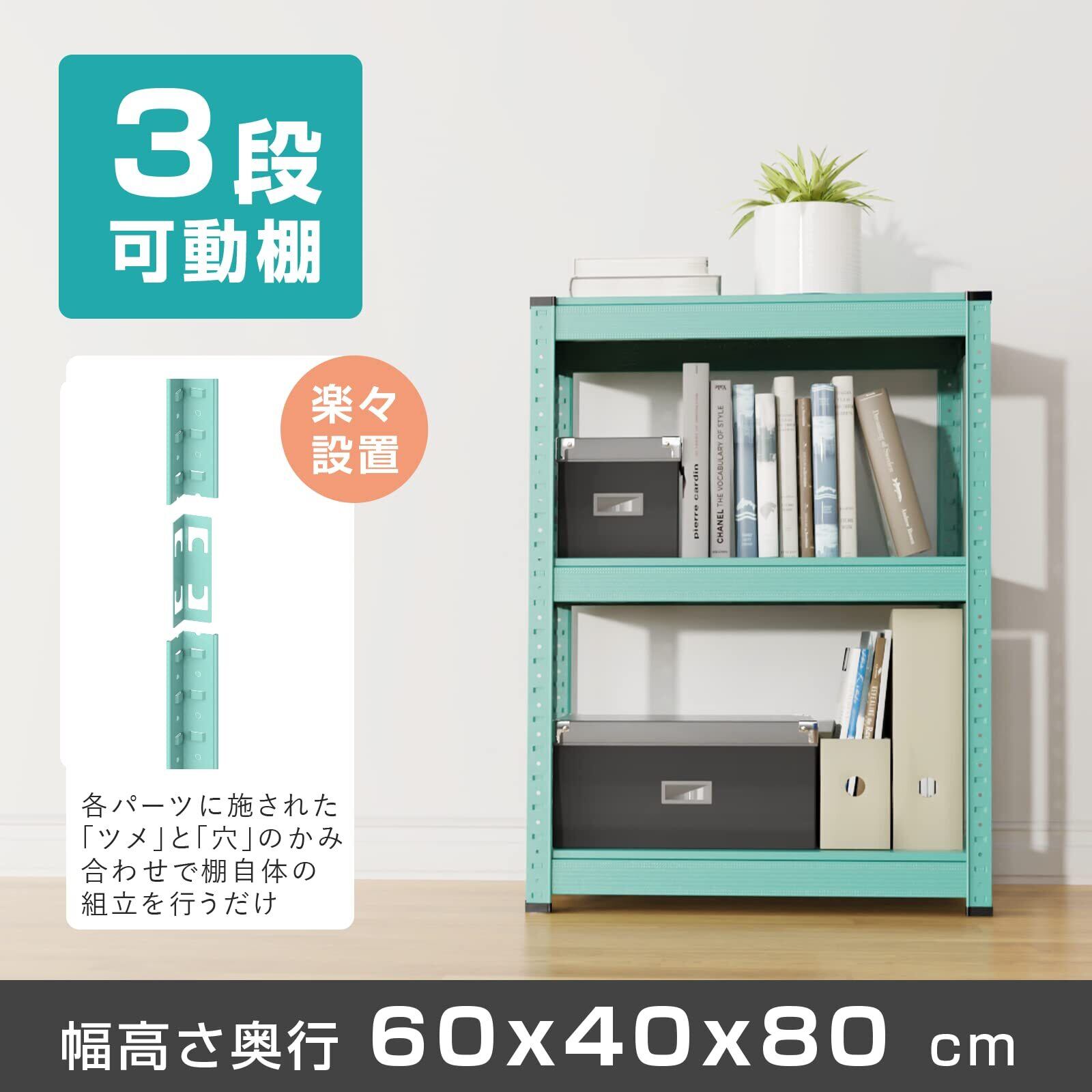 Umimileラック スチールラック 幅60cm 3段 耐荷重120kg/段 メタルラック (幅60×奥行40×高さ80cm, ブルー)
