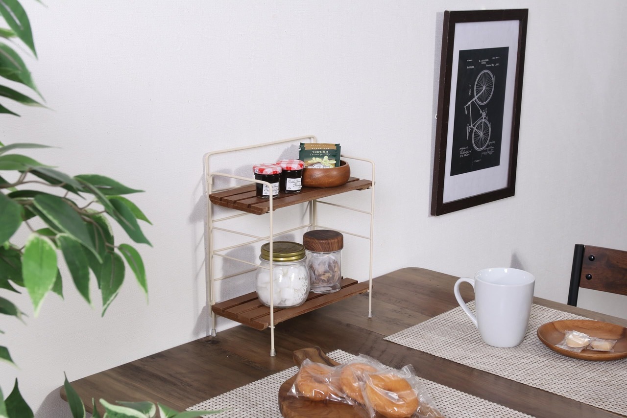 不二貿易 インテリアラック アイボリー×ブラウン 棚 折りたたみ 卓上収納 スチールフレーム リーブル 38496