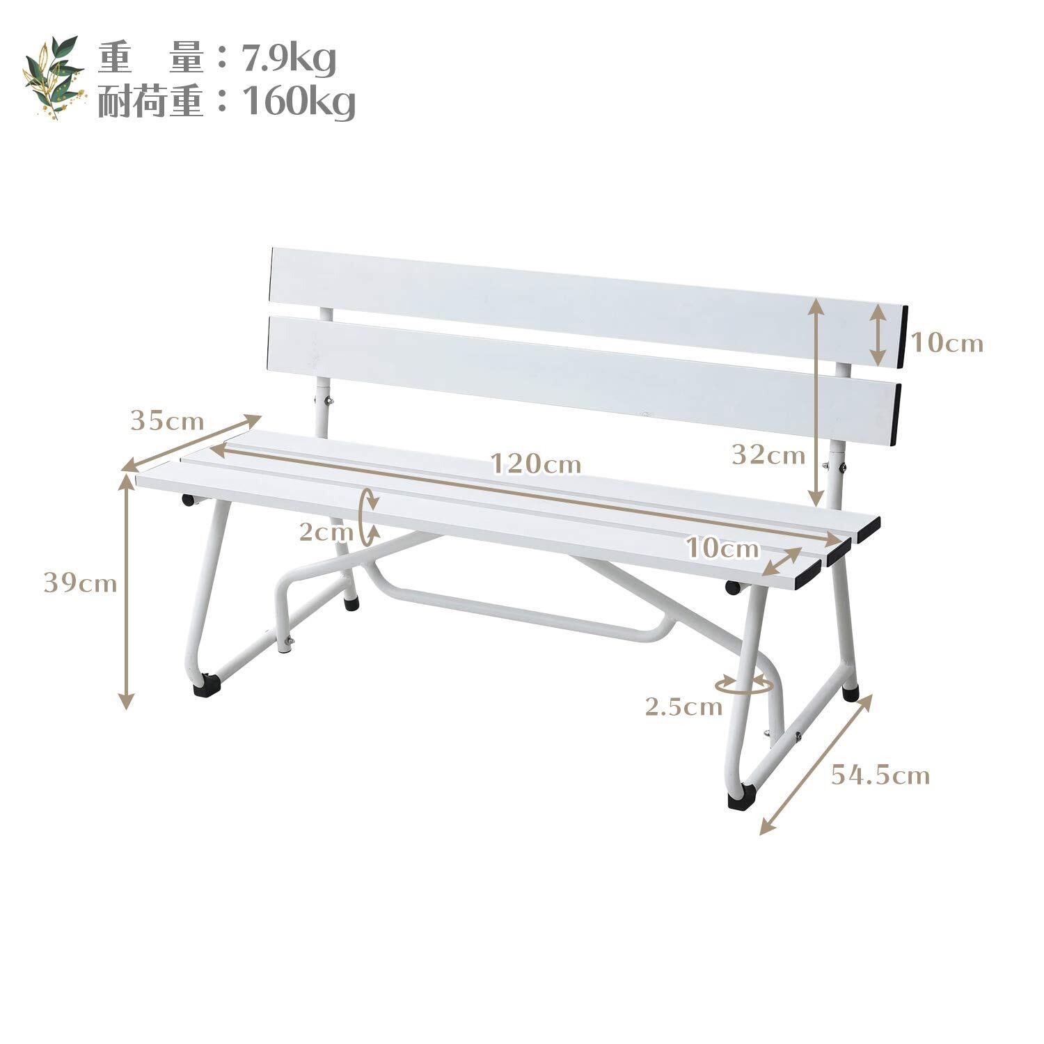 ガーデンマスター(Gardenmaster) アルミガーデンベンチ 幅120×奥行53.5×高さ69.5cm お庭 ベランダ テラス バルコニー 休憩所 喫煙所 ガーデンマスター ホワイト KAB-1205 | Bloomia