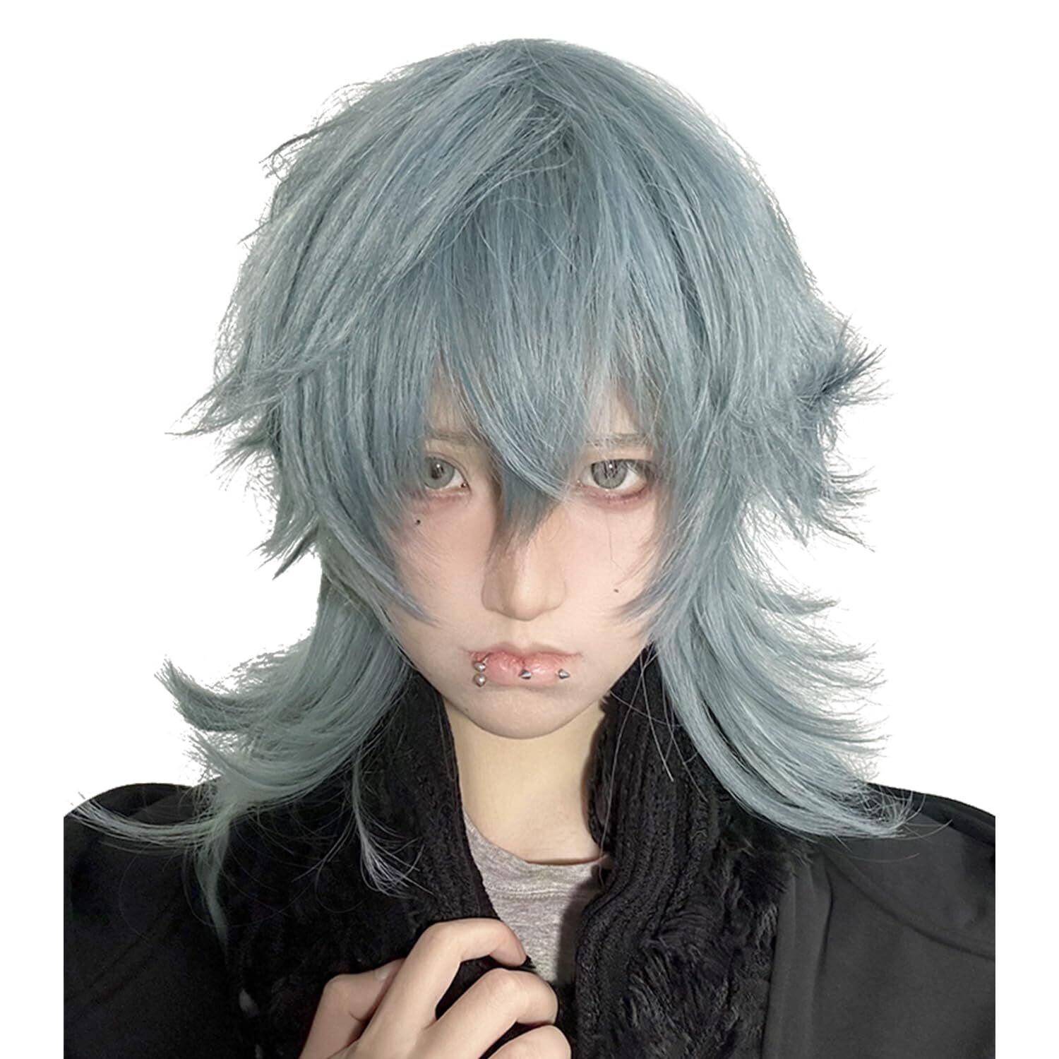 Sofeiyan ウィッグ メンズ 【クリスマスツリーのようなレイヤー】デザイン 男装 黒 ウルフ マレットウルフ ロング イケメン 自然 小顔 原宿 イメチェン コスプレ フルウィッグ 青 かつら cosplay 男女兼用 普段使い ウィッグネット付 (グレイッシュブルー) | Bloomia