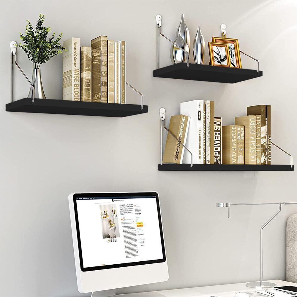 JUTOSU ウォールシェルフ オープンシェルフ 壁がけ棚 飾り棚 吊り棚 壁につける棚 壁面収納 壁を傷つけない 玄関 収納 ナチュラル ホワイト ブラック 1個入り (ブラック)