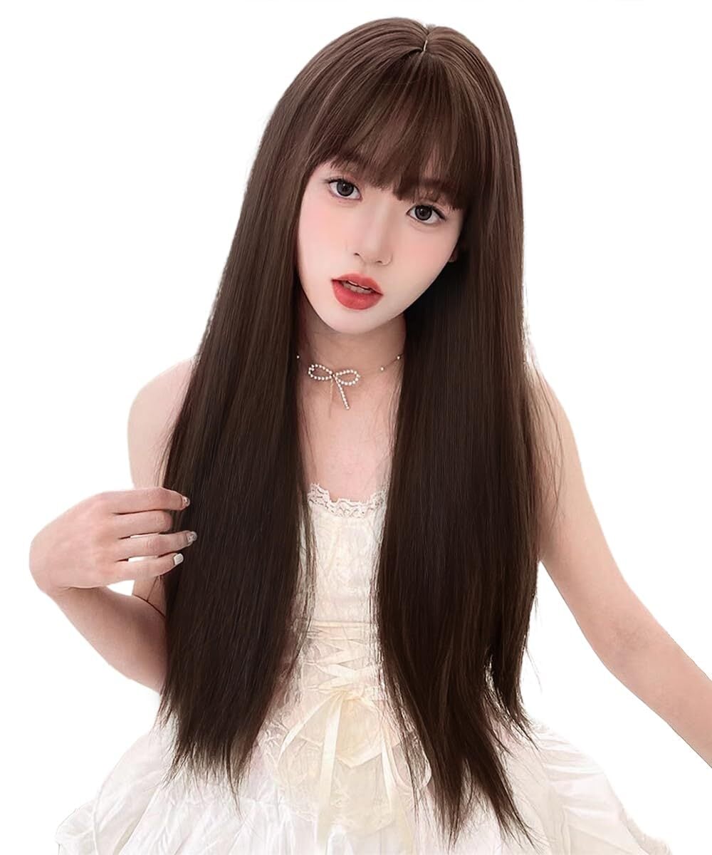 knnzkウィッグ ロング ストレート フルウィッグ 女性 ロリータ コスプレ 日常使い 自然 地雷女 韓国風 女装ウィッグ 耐熱ファイバー ブラウン(60cm)