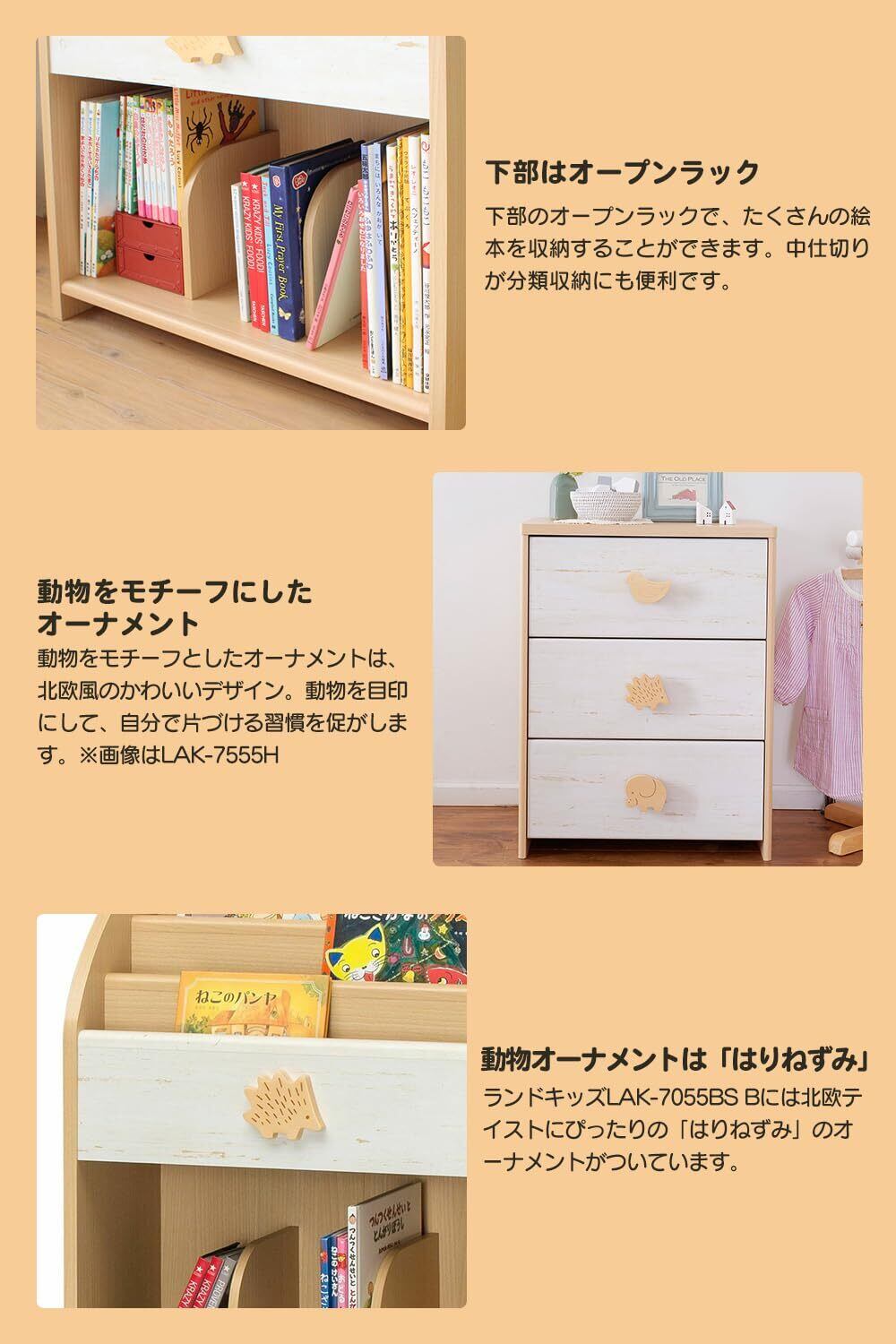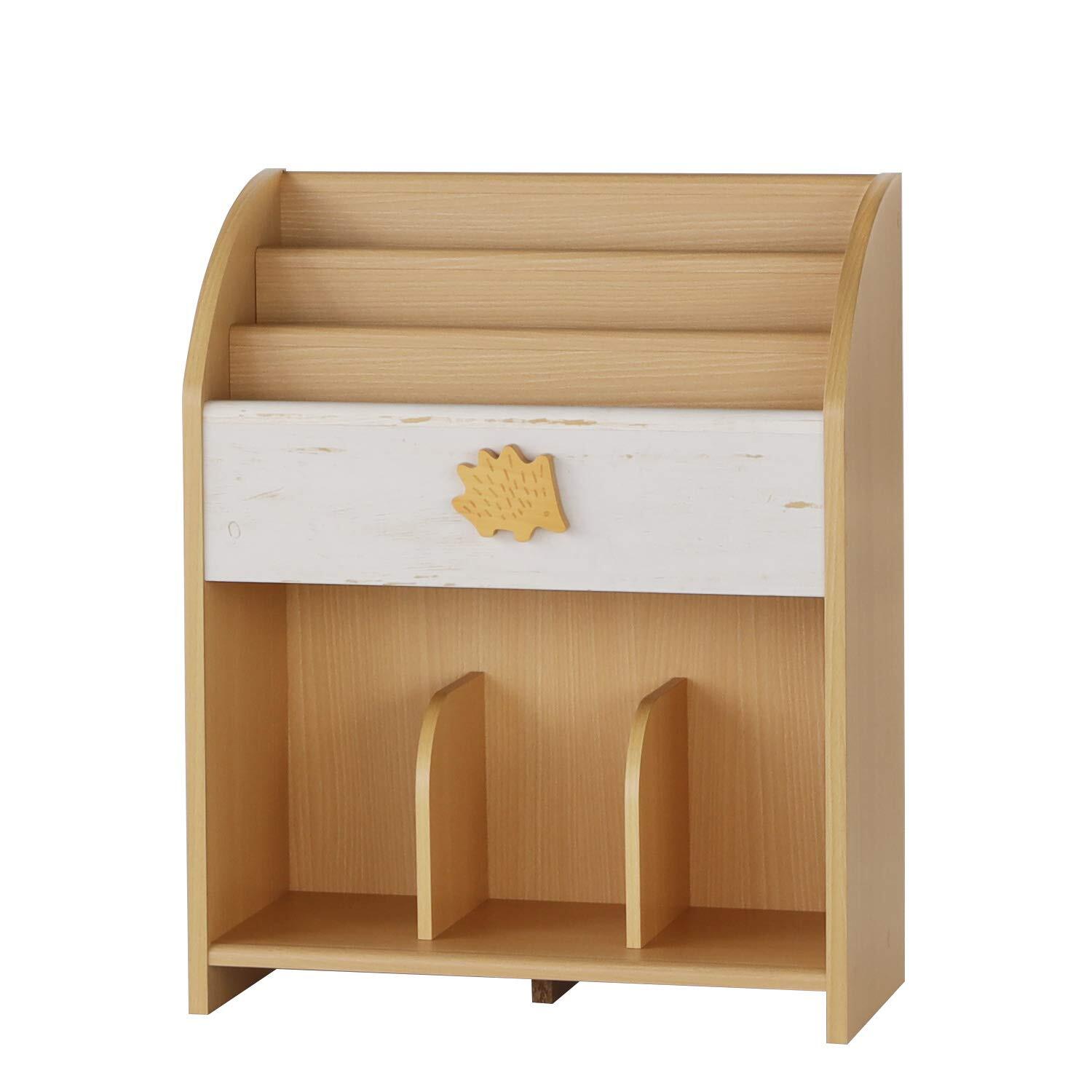 白井産業(Shirai) 表紙が見える 絵本棚 ラック 子供 収納 木製 リビングに置ける北欧テイスト かわいい ハリネズミのオーナメント ナチュラルブラウン 幅56.3 高さ69.6 奥行26.5cm LAK-7055BSB ランドキッズ | Bloomia