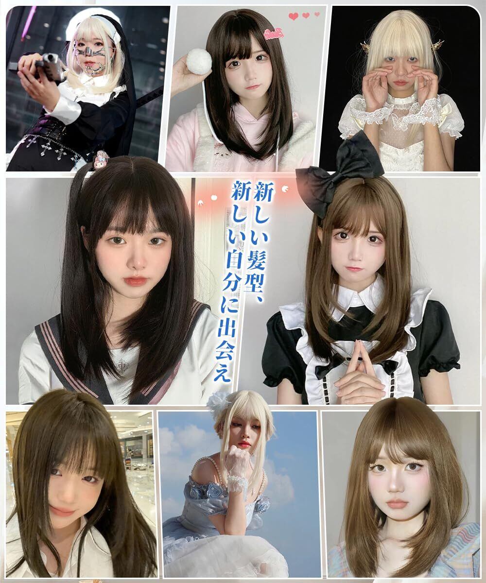 【小顔に見える髪型】小顔効果は抜群です。ふかし加工をして、前髪のふわふわ感を高めます。動きのある立体的な前髪がさらに可愛く見えます。髪型の曲がりもちょうどいいです。ぱつっと切りっぱなしのストレートでナチュラルなスタイル前髪も簡単に分けられます。綺麗さ優しい自然なゆるふわ髪を再現することができます。丸顔でも、面長でも、ベーシックな顔でも、このヘアスタイルはあなたに適しています。
