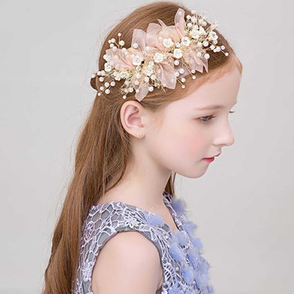 サムコス 子供 髪飾りリーフ パール 小花モチーフ カチューシャ ウエディング ヘッドドレス 発表会 ヘアアクセサリー 結婚式 入学式 卒業式