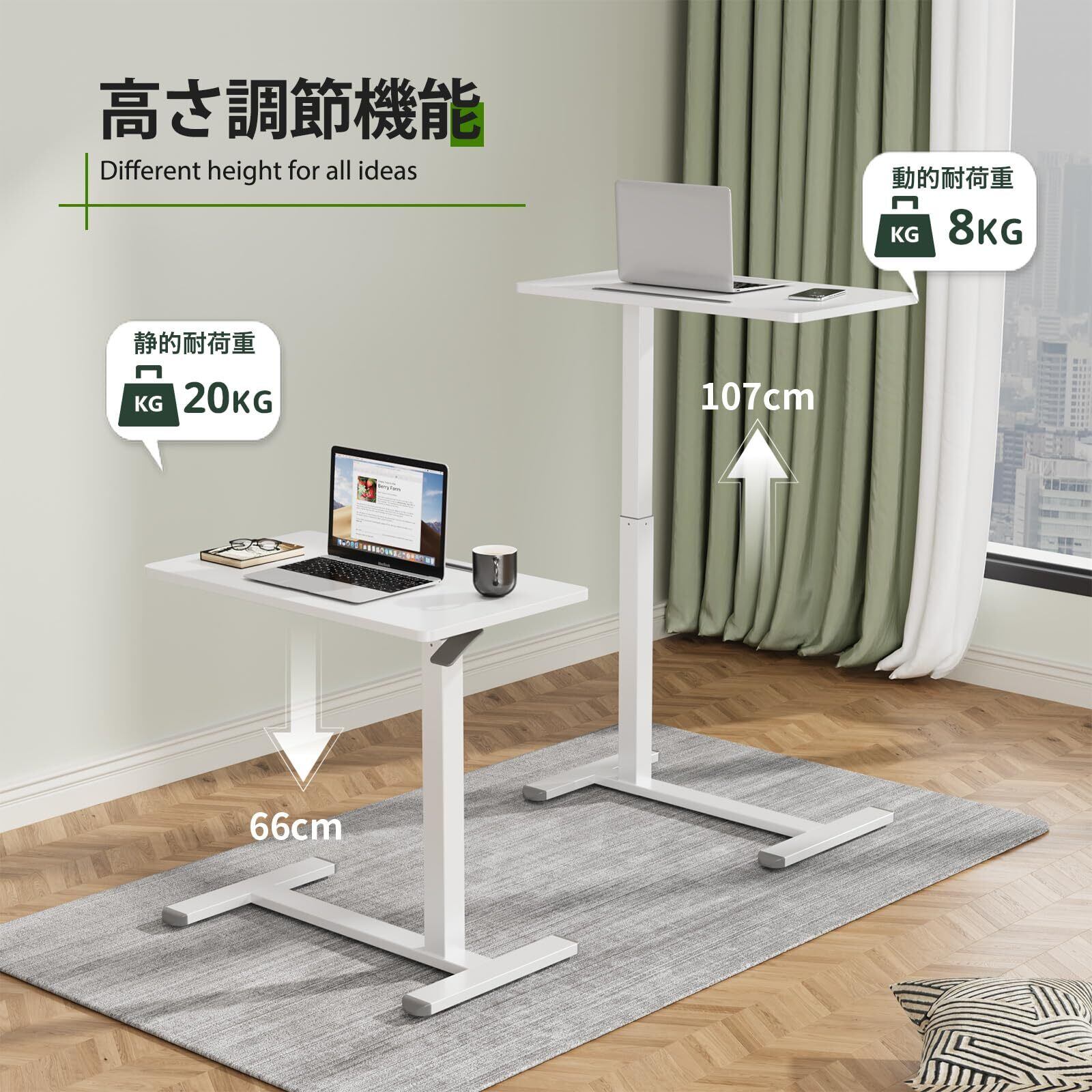 GIBBON MOUNTS 昇降式デスク 幅70cm×奥行き40cm サイドテーブル 2ステップで組立完了 スタンディングデスク Pad用溝付き パソコンデスク ガス圧 高さ調節66-107cm ベッドサイド テーブル キャスター付き ホワイト白 | Bloomia