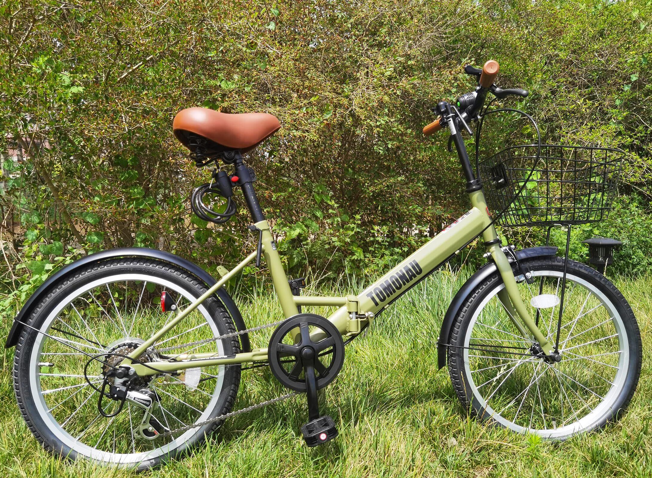 折り畳み自転車 折りたたみ自転車 20インチ シマノ6段変速 カゴ ワイヤー錠 ライト付き 通勤 通学 街乗 前後泥除け装備 ハンドルの高さ調節できる 小径車 ミニベロ