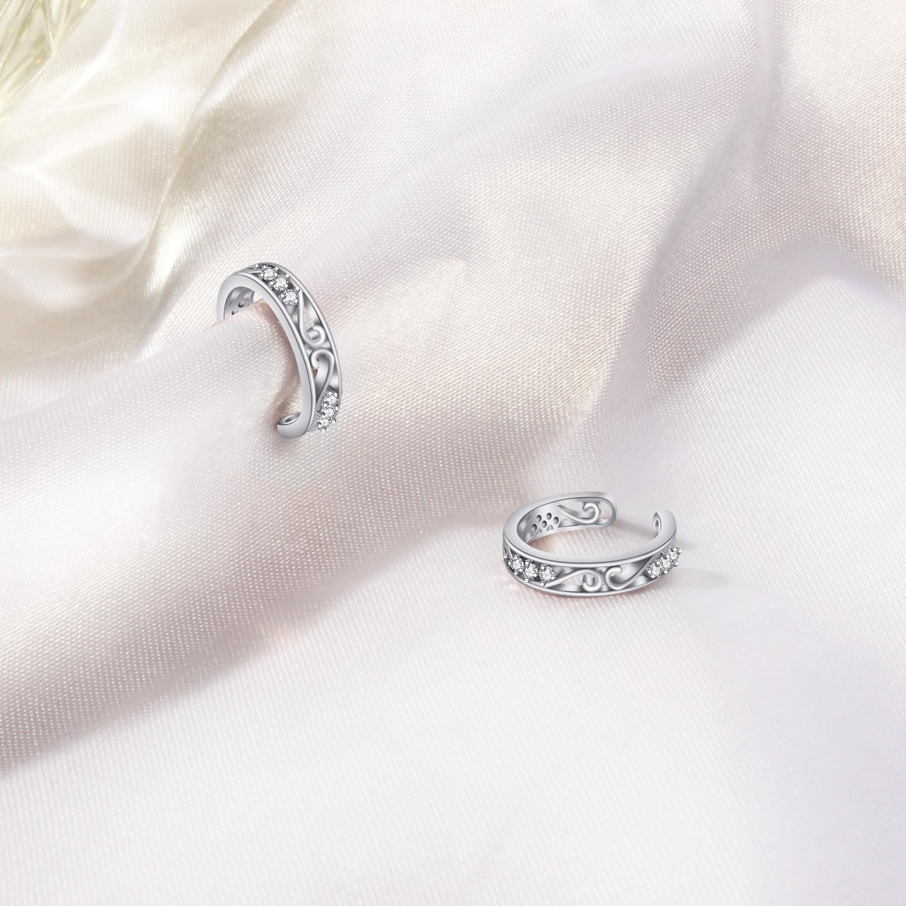 SK.Whiee イヤーカフ レディース 金属アレルギー対応 ジルコニア 「愛の誓い」 シルバー925 イヤーカフ シンプル 片耳用 大人 男女兼用 アクセサリー プレゼント 誕生日 記念日 普段使い アラベスク柄 唐草 透かし | Bloomia